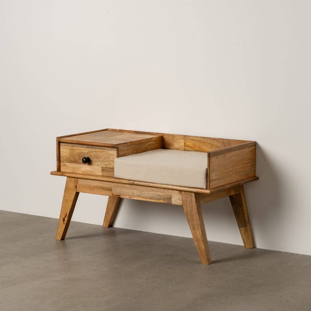 Banco Natural de Madera de Mango 98x46x54 cm con Cojín Desenfundable