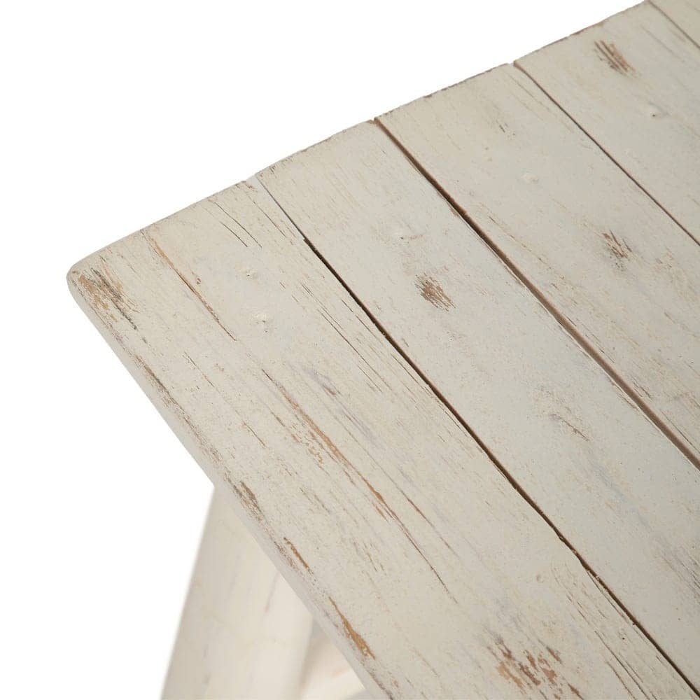Banqueta Blanco Rozado de Madera de Teca 45 cm – Elegante y Sofisticada para Salón y Entrada