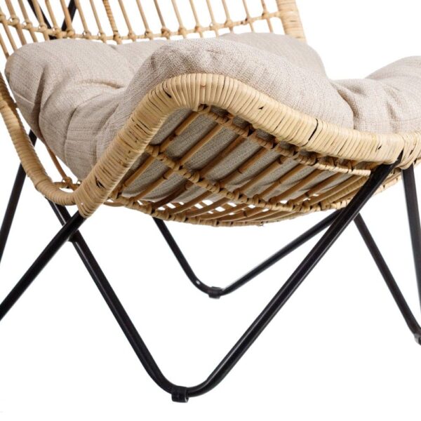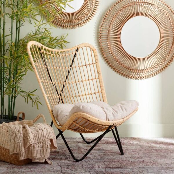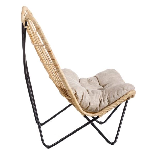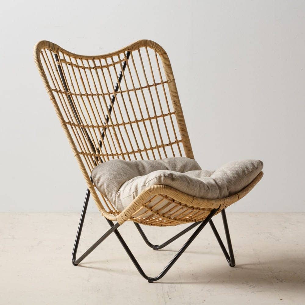 Las medidas del sillón son de 76 x 76 x 87 cm, con una altura del asiento de 34 cm desde el suelo, y un respaldo que varía entre 52-58 cm para un confort óptimo. Además, su cojín desenfundable es fácil de mantener, permitiendo un lavado sencillo para una mayor durabilidad. No apilable, este sillón es perfecto para agregar un toque único a tu salón, comedor o cualquier rincón especial de tu hogar. ¡Un asiento único y cómodo que transforma tu espacio!