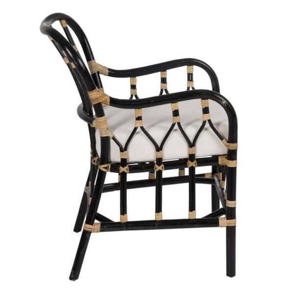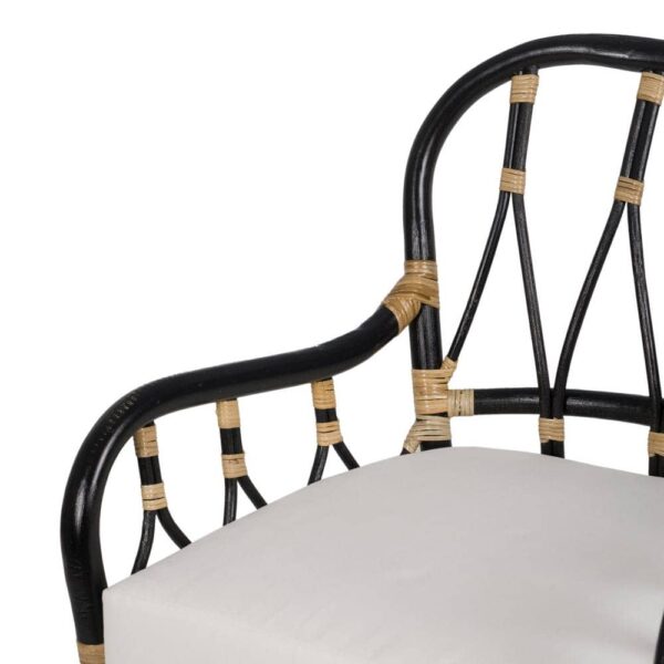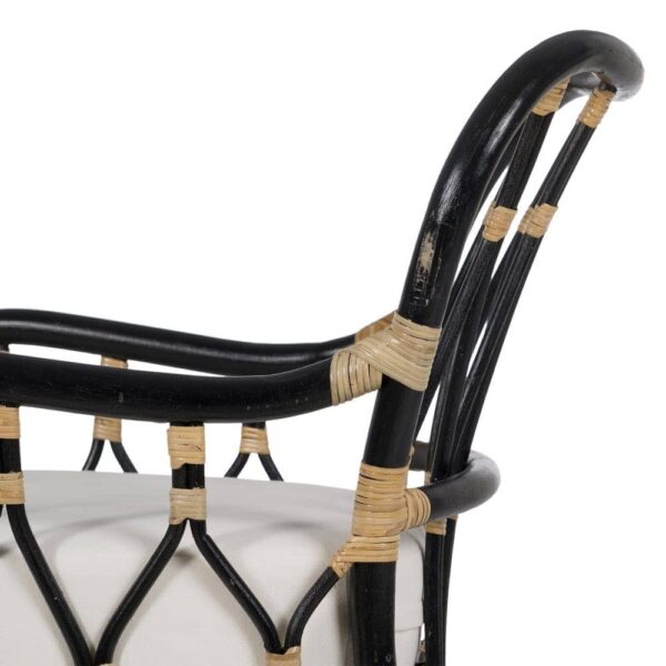 Con unas dimensiones de 58 cm x 62 cm x 85 cm, este sillón tiene un asiento cómodo a 54 cm de altura, ideal para largos momentos de descanso. El respaldo de 40 cm y los reposabrazos de 66,5 cm añaden un extra de confort. Además, no requiere montaje, lo que te permite disfrutar de inmediato de su diseño único. Su capacidad de peso máximo es de 150 kg, lo que lo convierte en una opción duradera para cualquier tipo de espacio. ¡Da un toque único y sofisticado a tu hogar con este sillón de ratán!