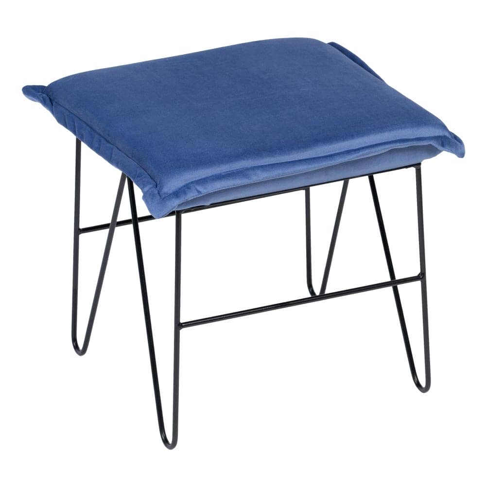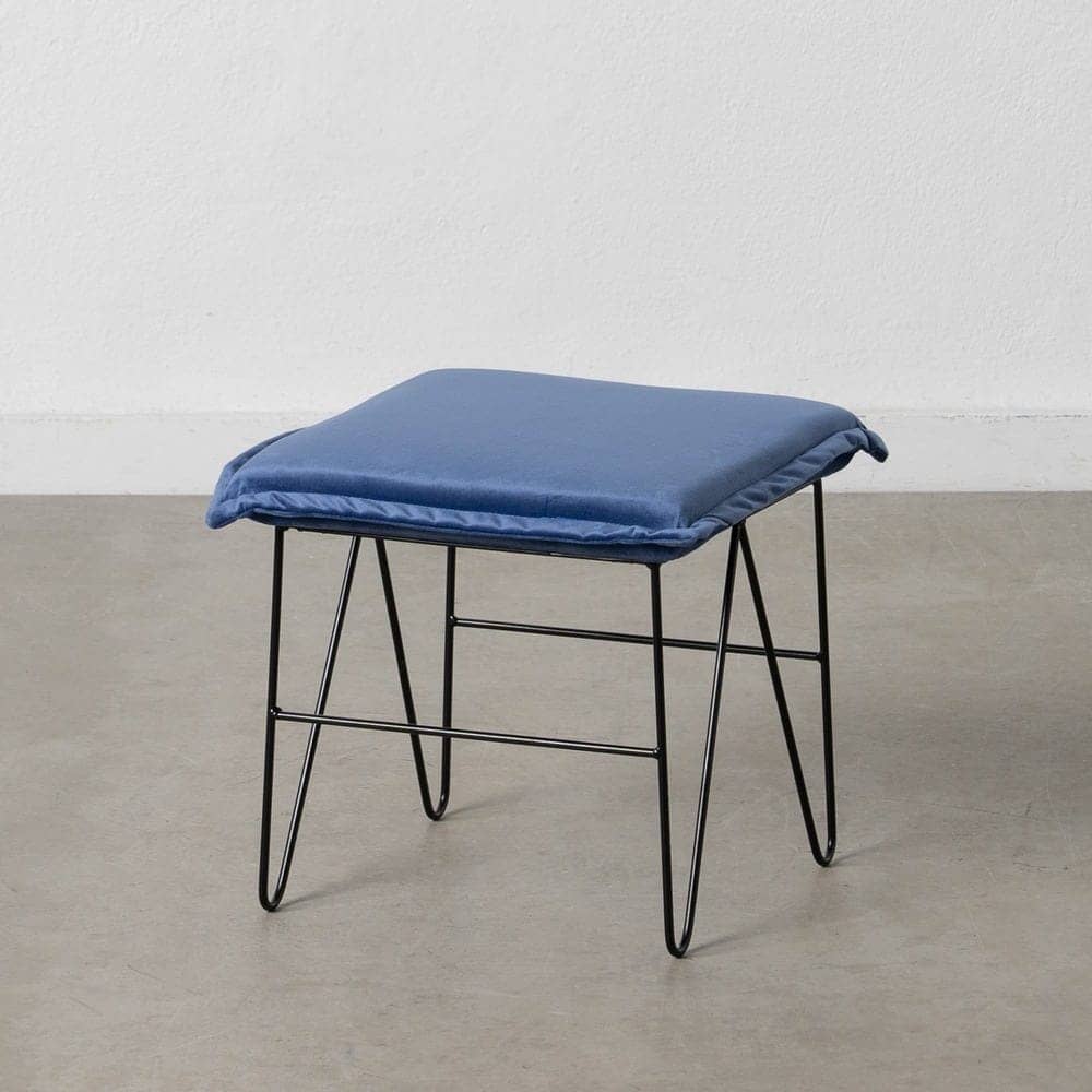 Puf terciopelo azul 40x40x35 cm, tejido 100% poliéster, base de hierro