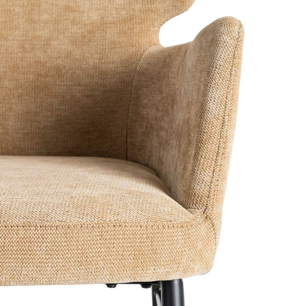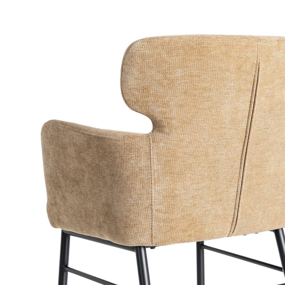 Material: tejido, metal. Altura asiento: 49cm. Ancho asiento: 43cm. Profundidad asiento: 46cm. Altura respaldo: 40cm. Altura reposabrazos: 21cm. No apilable. Cumple la normativa EN16139 (catering).