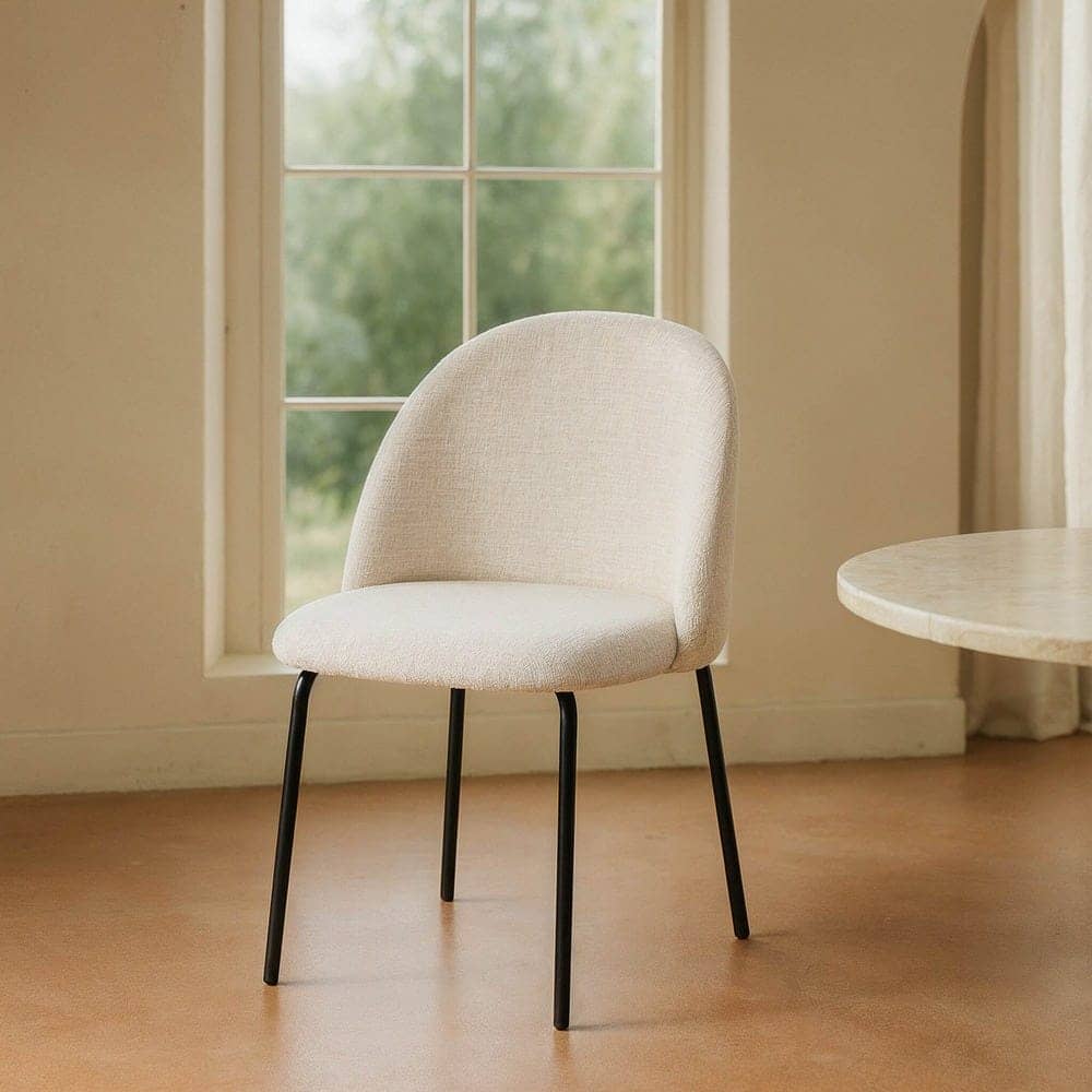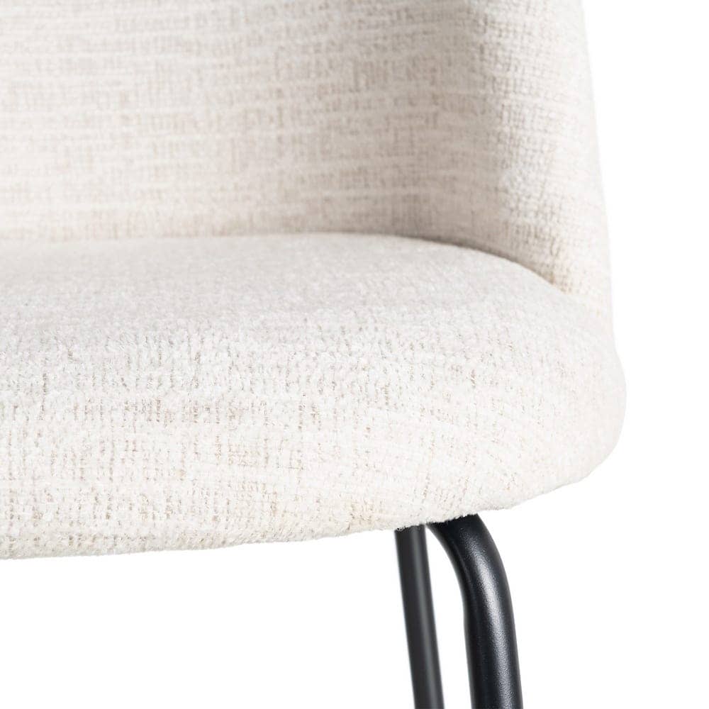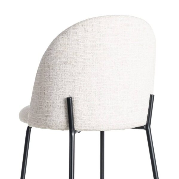 Material: tejido – metal Patas: hierro negro Tejido: 100% poliéster Gramaje: 320gr/m2 Altura asiento: 48cm. Altura respaldo: 33cm. Ancho asiento: 46cm. Profundo asiento: 42cm. Patas para montar. Cumple normativa EN16139:2013