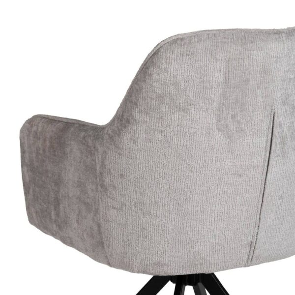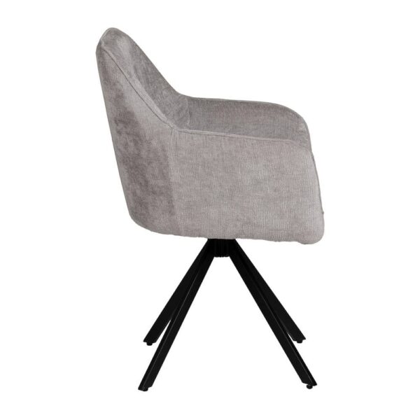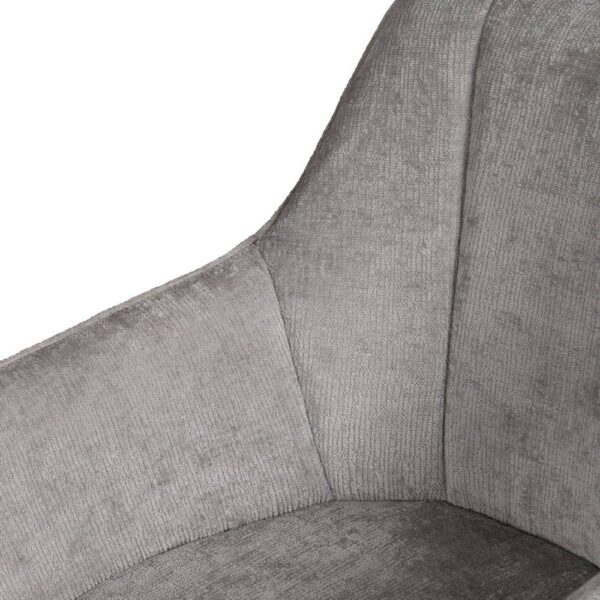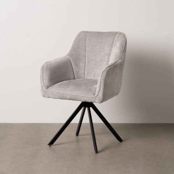 Material: tejido – metal (hierro) Tejido: 100% poliéster Altura asiento: 48cm. Altura patas: 39cm. Ancho asiento: 41cm. Profundo asiento: 43cm. Altura respaldo: 39cm. Altura reposabrazos desde el suelo: 64cm. Para montar. No apilable. Cumple normativa: EN16139:2013