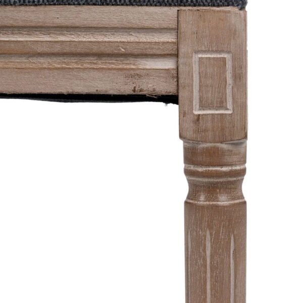 Material: Madera de abedul, tejido (100% poliéster). Material patas: Madera de caucho. Relleno: Foam. Gramaje: 220g. Altura asiento: 49cm. Profundidad asiento: 43cm. Altura patas: 42cm. Altura respaldo: 49cm. Requiere montaje. No apilable.