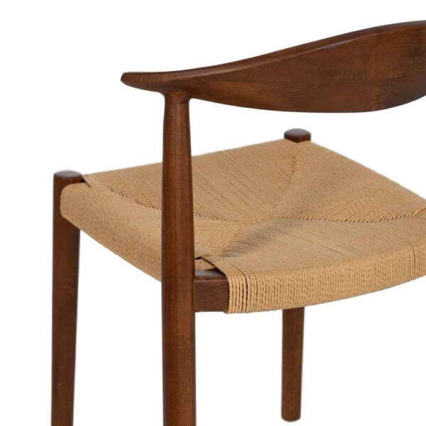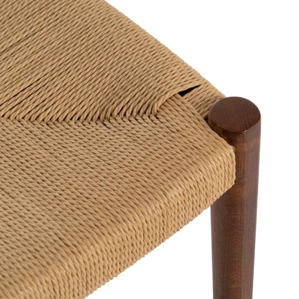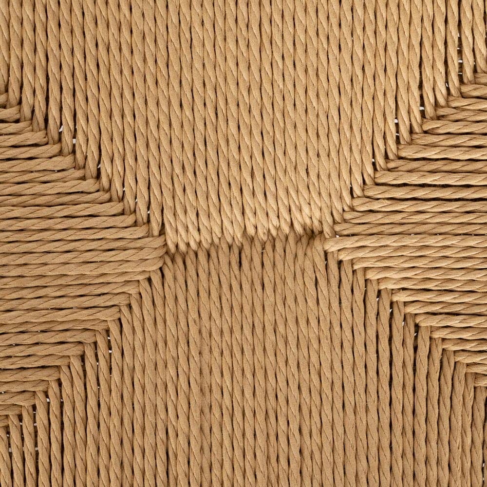 Material estructura: Madera de haya. Material asiento: Cuerda de papel. Altura del asiento:46cm. Ancho del asiento:44,8cm. Altura de las patas:41cm. Altura del respaldo:32cm. Distancia entre las patas:37.5cm. Peso máximo soportado:130kgs. No apilable. Cumple con la normativa UNE-EN 12520:2016