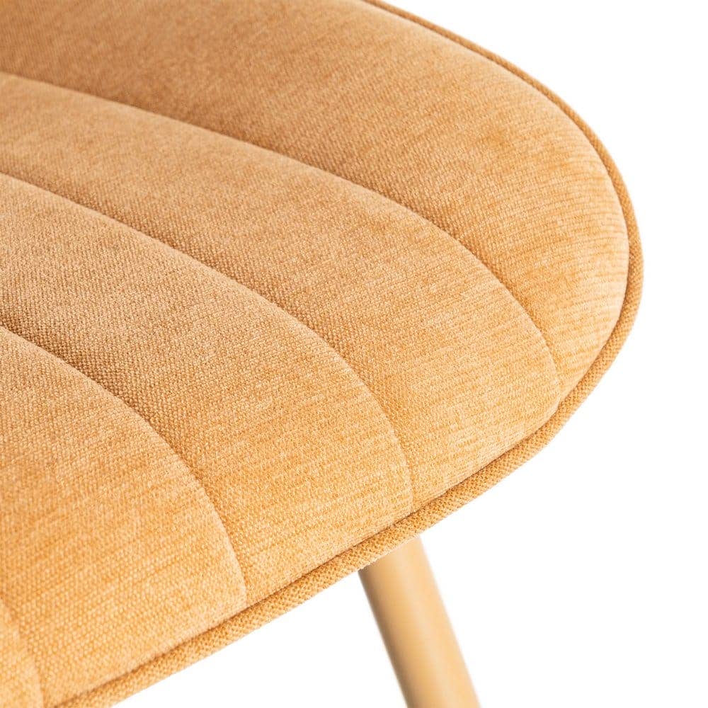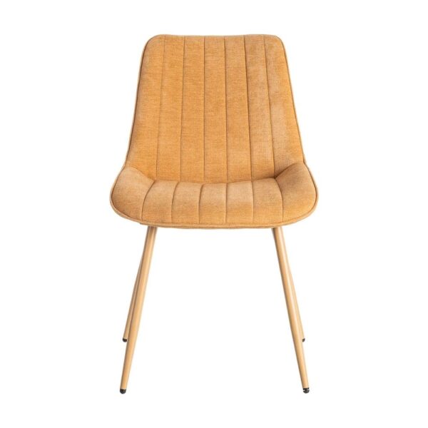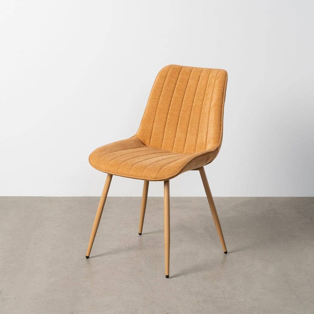 Material: tejido 100% poliéster Patas: hierro Gramaje: 150 gr. / m2 Relleno: foam – madera contrachapada. Densidad: 20 kg. / m3 Altura asiento: 47cm. Profundo asiento: 44cm. Altura patas: 42.5cm. Altura respaldo: 43cm. Distancia entre patas: 47cm. Peso máximo soportado: 130kgr. No apilable. Patas para montar. Cumple normativa EN16139:2013