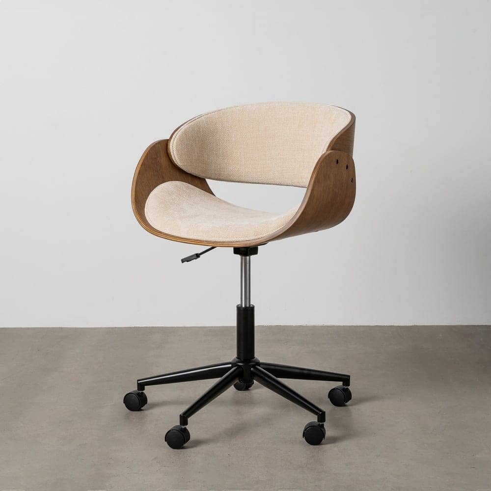 Silla Giratoria 360º Crema-Marrón, Tejido y Madera, 59x64x88 cm