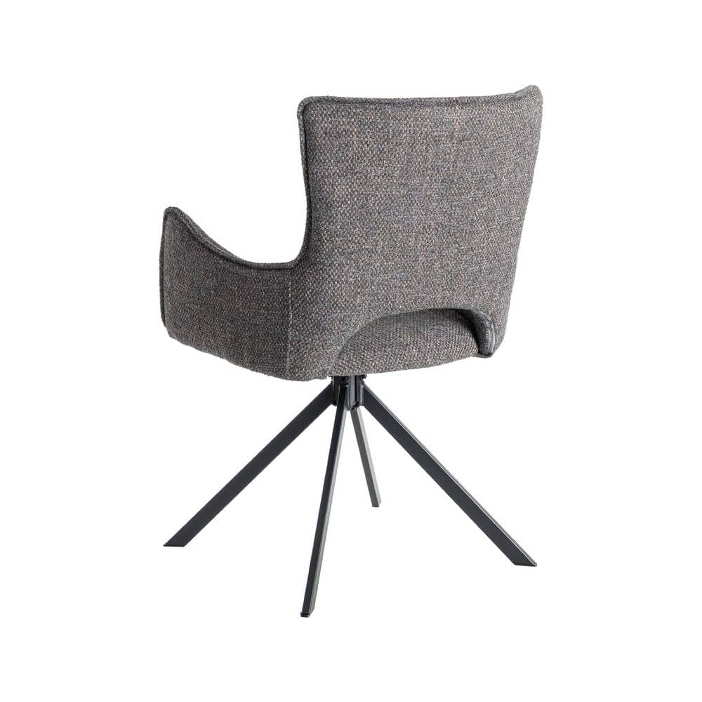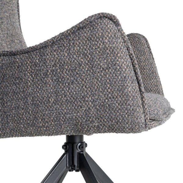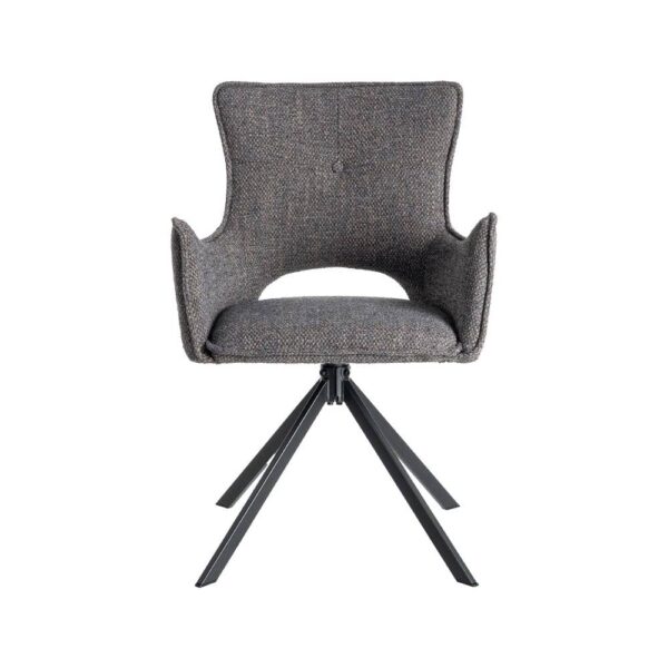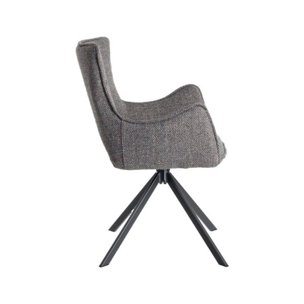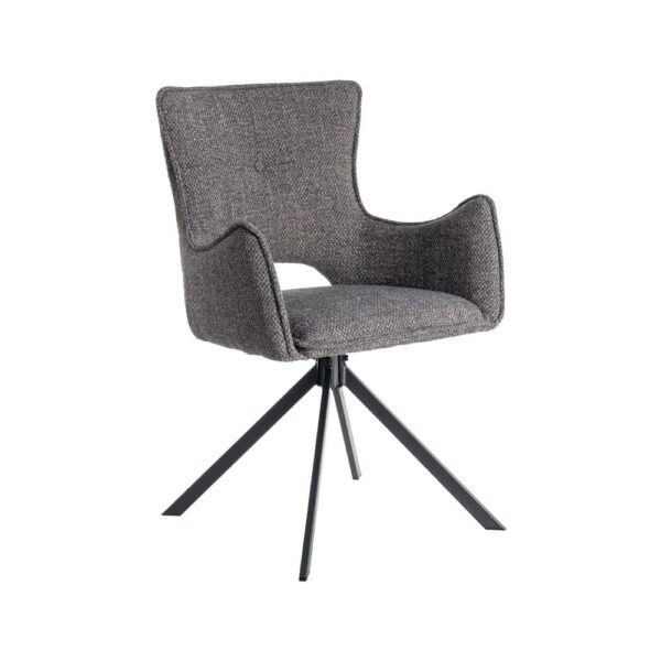 Material: tejido, metal. Altura asiento: 47cm. Ancho asiento: 43cm. Profundidad asiento: 46cm. Altura respaldo: 45cm. Altura resposabrazos: 21cm. No apilable. Cumple la normativa EN16139 (catering).