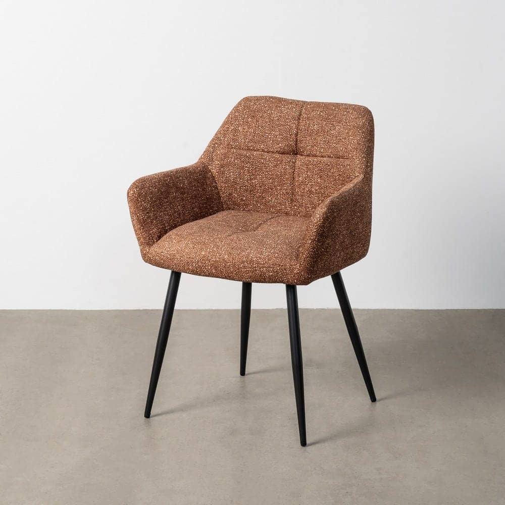 Material: tejido – metal Tejido: 100% poliéster Patas: hierro Altura asiento: 50cm. Altura respaldo: 32cm. Profundo asiento: 42.5cm. Altura reposabrazos desde el suelo: 65cm. Patas para montar. Cumple normativa EN13139:2013 No apilable.