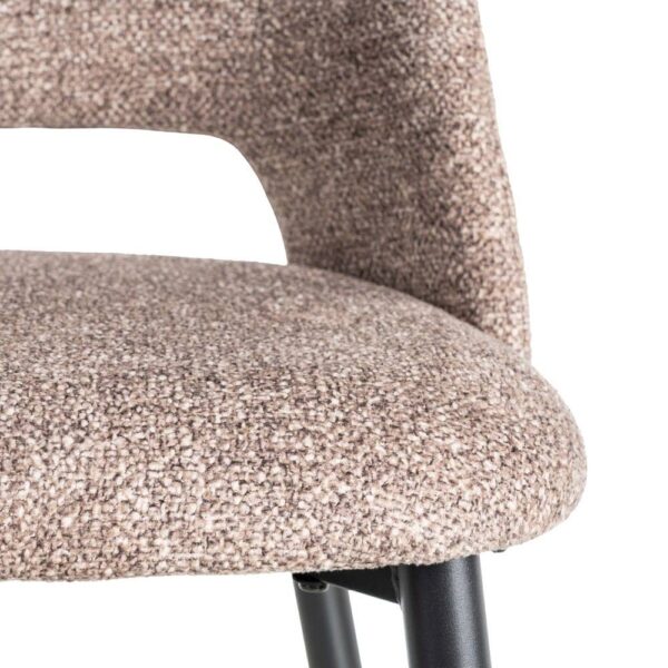 Material: tejido – metal Tejido: 100% poliéster Patas: hierro Altura asiento: 46cm. Altura respaldo: 39cm. Profundo asiento: 44cm. Patas para montar. Cumple normativa EN13139:2013