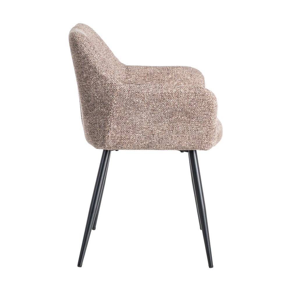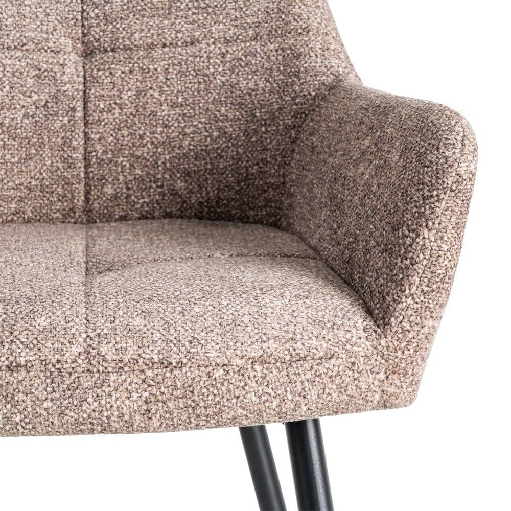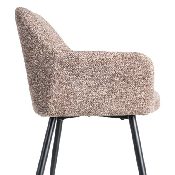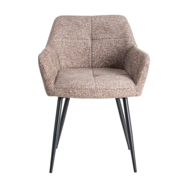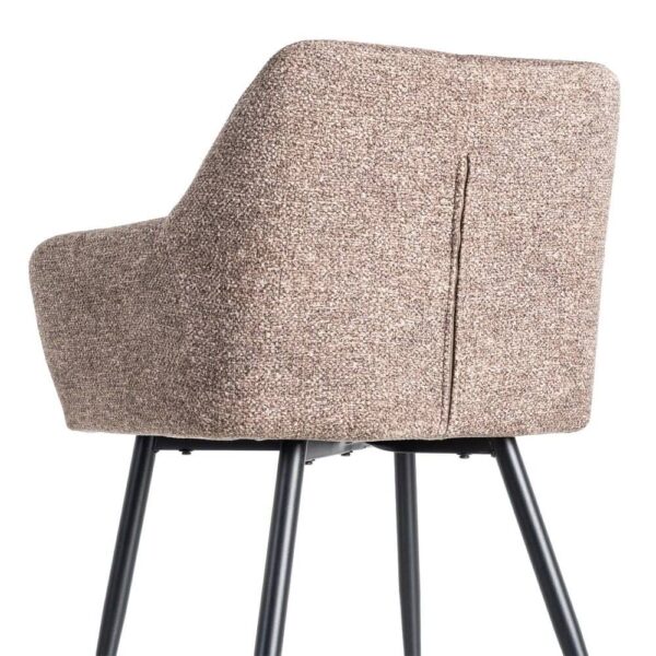 Material: tejido – metal Tejido: 100% poliéster Patas: hierro Altura asiento: 50cm. Altura respaldo: 32cm. Profundo asiento: 42.5cm. Altura reposabrazos desde el suelo: 65cm. Patas para montar. Cumple normativa EN13139:2013 No apilable.