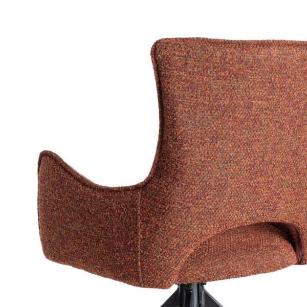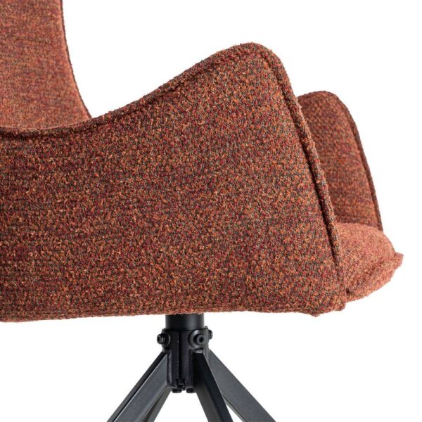 Material: tejido, metal. Altura asiento: 47cm. Ancho asiento: 43cm. Profundidad asiento: 46cm. Altura respaldo: 45cm. Altura resposabrazos: 21cm. No apilable. Cumple la normativa EN16139 (catering).