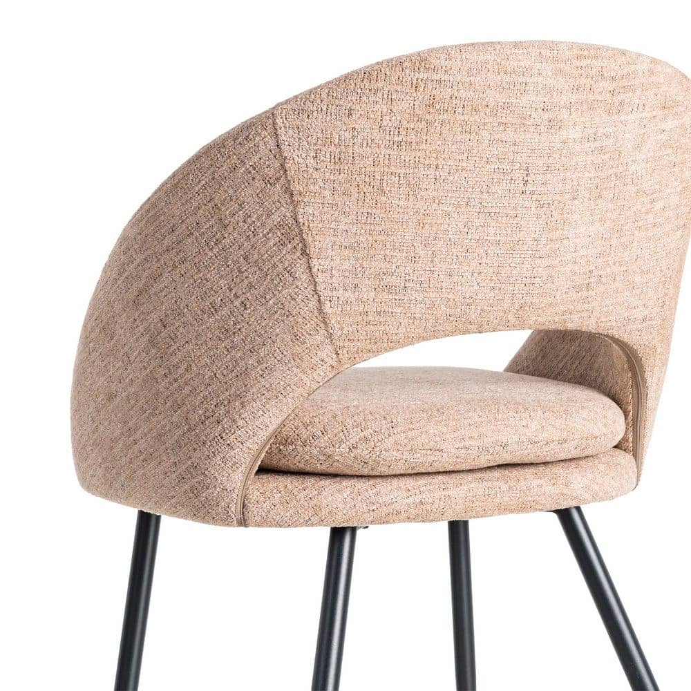Material: tejido – metal Patas: hierro negro Tejido: 100% poliéster Gramaje: 320gr/m2 Altura asiento: 51.5cm. Altura respaldo: 34cm. Ancho asiento: 46cm. Profundo asiento: 48cm. Patas para montar. Cojín desenfundable con cremallera. Cumple normativa EN16139:2013