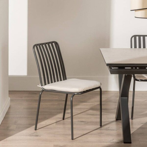 La Silla Finnegan en antracita es el equilibrio perfecto entre estilo, comodidad y durabilidad. Hecha de acero de alta calidad, esta silla resistente es ideal para cualquier ambiente exterior, desde terrazas hasta jardines. Su diseño moderno, con líneas sencillas y elegantes, es tan cómodo como atractivo, y su asiento de 42 cm de ancho y 45 cm de profundidad asegura momentos de descanso confortables.