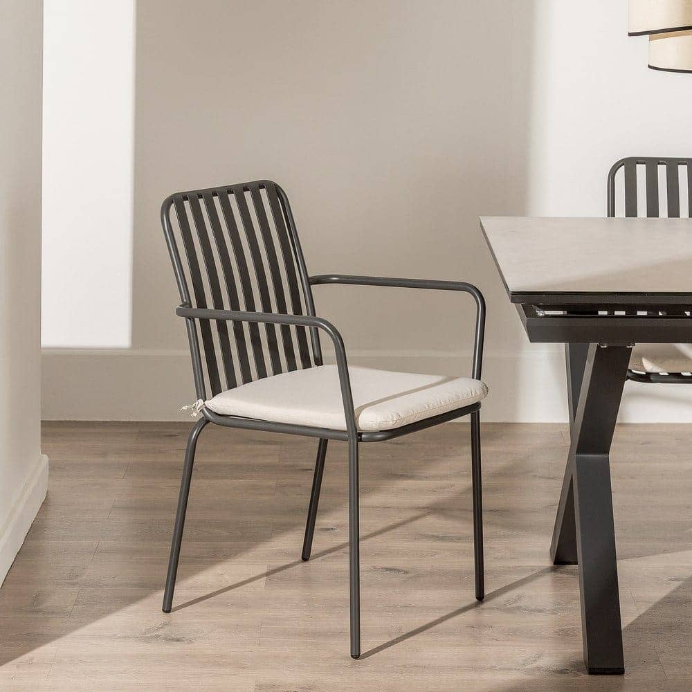Gracias a su estructura de acero, la silla Briggs es resistente a las inclemencias del tiempo, perfecta para exteriores. Su diseño apilable te permitirá ahorrar espacio cuando no la utilices. Con unas medidas de 56 cm x 57 cm x 87 cm, es ideal tanto para cenas informales como para reuniones al aire libre. Además, su capacidad de soportar hasta 130 kg garantiza durabilidad y estabilidad. ¡Renueva tu espacio exterior con la silla Briggs y disfruta del confort y estilo que mereces!