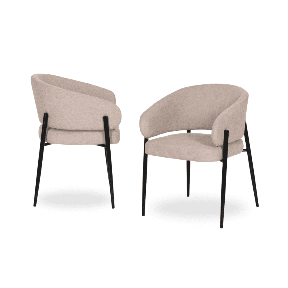 Pack de 2 Sillas Beige Drennan con Tejido de Alta Calidad y Patas de Hierro – Diseño Ergonómico y Sin Montaje, Perfectas para Salones y Oficinas