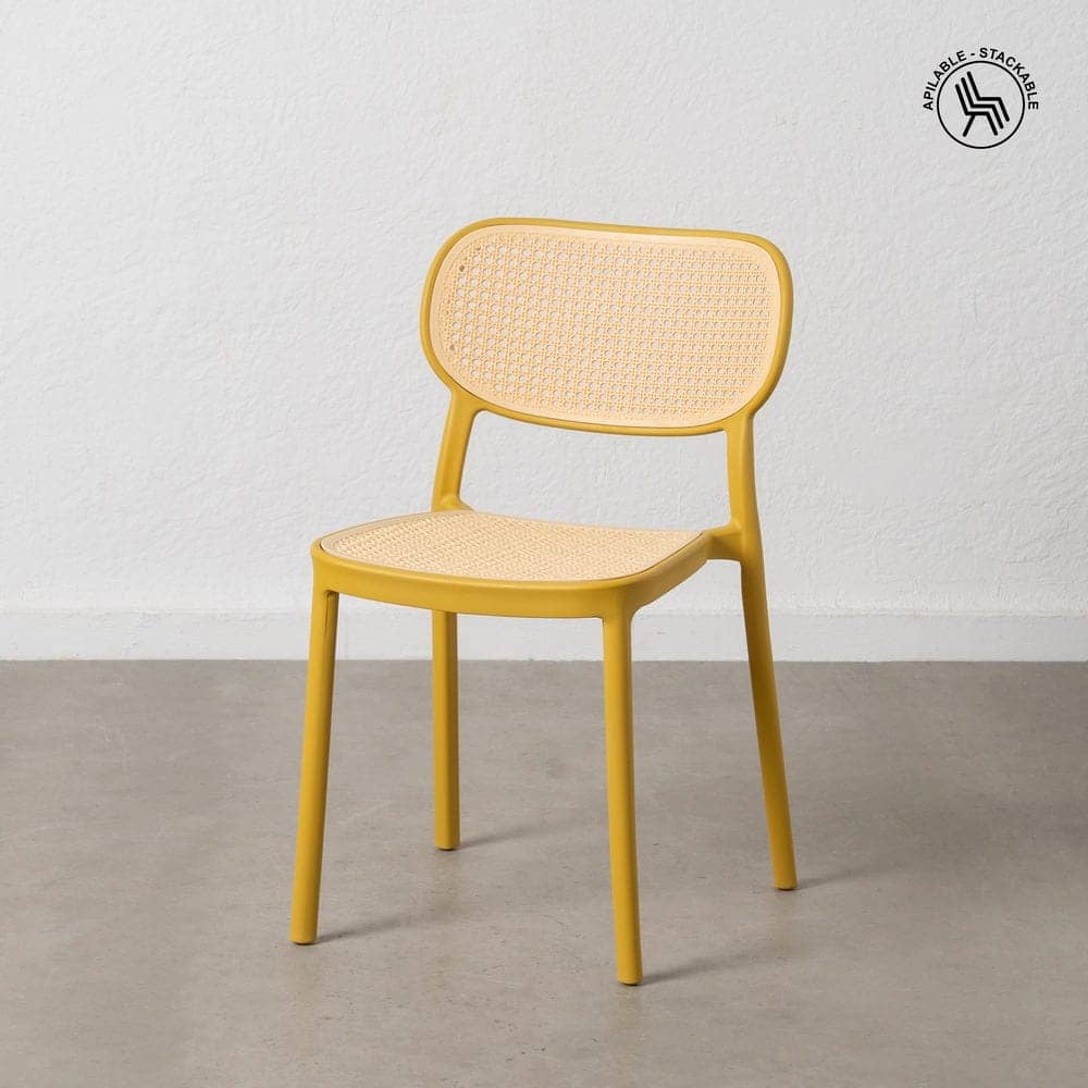 Llena de vitalidad y diseño tu comedor o terraza con el pack de 2 sillas Kyle en elegante combinación de beige y mostaza. Fabricadas en resistente polipropileno, son ligeras, apilables y perfectas para adaptarse a cualquier espacio con estilo y funcionalidad.