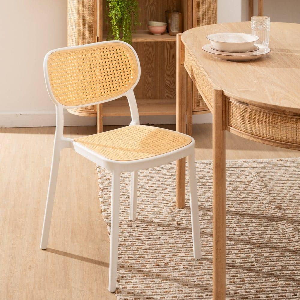 Disfruta del diseño fresco y funcional del pack de 2 sillas Gavin, ideales para interiores y exteriores. Su combinación de tonos beige y blanco añade un toque moderno y elegante a cualquier espacio.