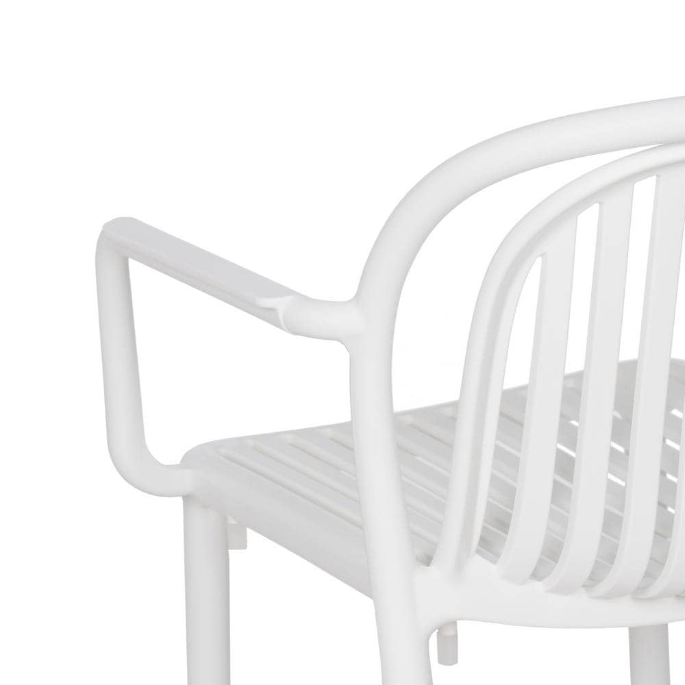 Disfruta del máximo confort y estilo con el Pack de 2 Sillas Blancas Yalrick. Su diseño moderno con brazos y fabricadas en polipropileno resistente las hace ideales para terrazas, jardines o balcones. ¡Comodidad y elegancia en un solo producto!