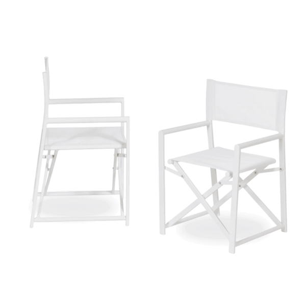El Pack de 2 Sillas de Director Reid Blancas combina estilo y funcionalidad para tus espacios al aire libre. Fabricadas con estructura de aluminio y asiento de textileno, ofrecen ligereza, resistencia y comodidad. Su diseño plegable facilita el almacenamiento. Lleva la elegancia de los estudios de cine a tu terraza o jardín.