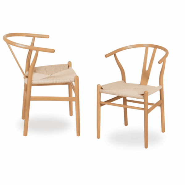 Aporta un toque de elegancia natural a tu hogar con el pack de 2 sillas Nolan. Fabricadas en madera de haya y con un asiento de cuerda de papel artesanal, estas sillas destacan por su diseño orgánico y su comodidad. Su respaldo curvado y su estética atemporal las convierten en la opción perfecta para ambientes escandinavos o minimalistas.