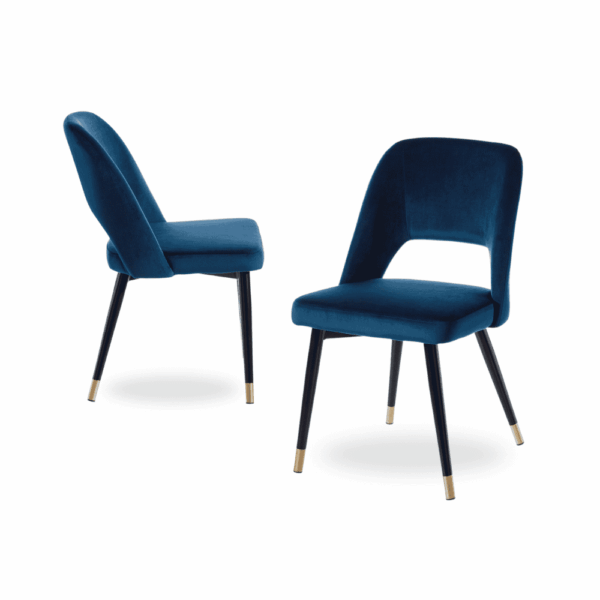 Eleva tu decoración con el Pack de 2 Sillas Drew, un diseño moderno que combina un vibrante tapizado azul y patas de acero con detalles dorados. Perfectas para añadir sofisticación y confort a cualquier espacio. ¡Hazlas tuyas y transforma tu hogar con estilo!