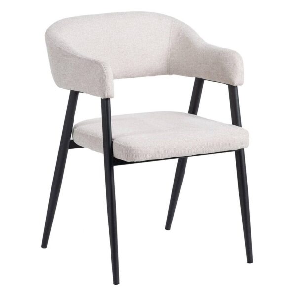 Inyecta elegancia y confort en tu hogar con las sillas Jonas. Tapizadas en tela crema de alta calidad y con patas de metal negro, estas piezas combinan diseño moderno y funcionalidad, siendo perfectas para cualquier espacio sofisticado y acogedor.