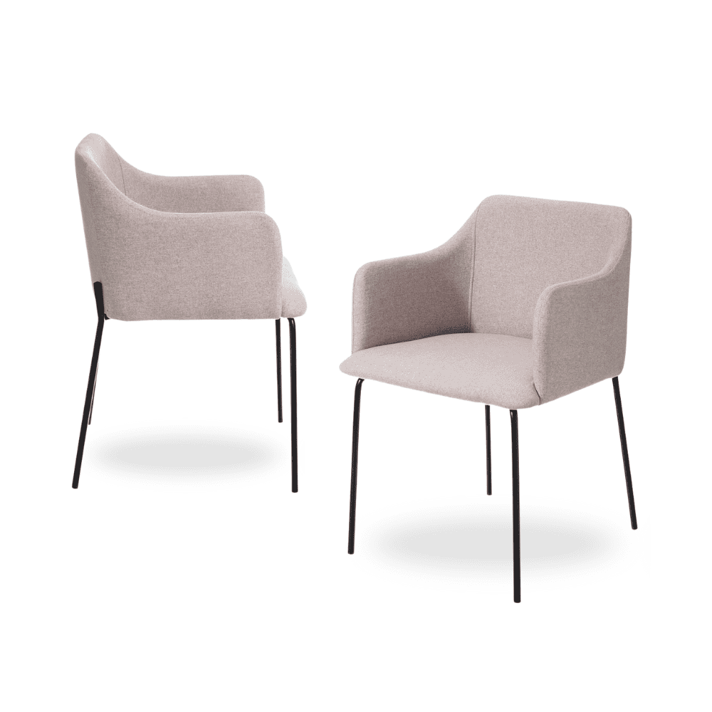 Aporta elegancia y confort a tu hogar con el Pack de 2 Sillas Logan en suave tono beige. Con reposabrazos envolventes, patas de metal negro y un diseño contemporáneo, estas sillas son perfectas para salones, comedores o espacios de trabajo. ¡Transfórmalas en el centro de atención de tu hogar!