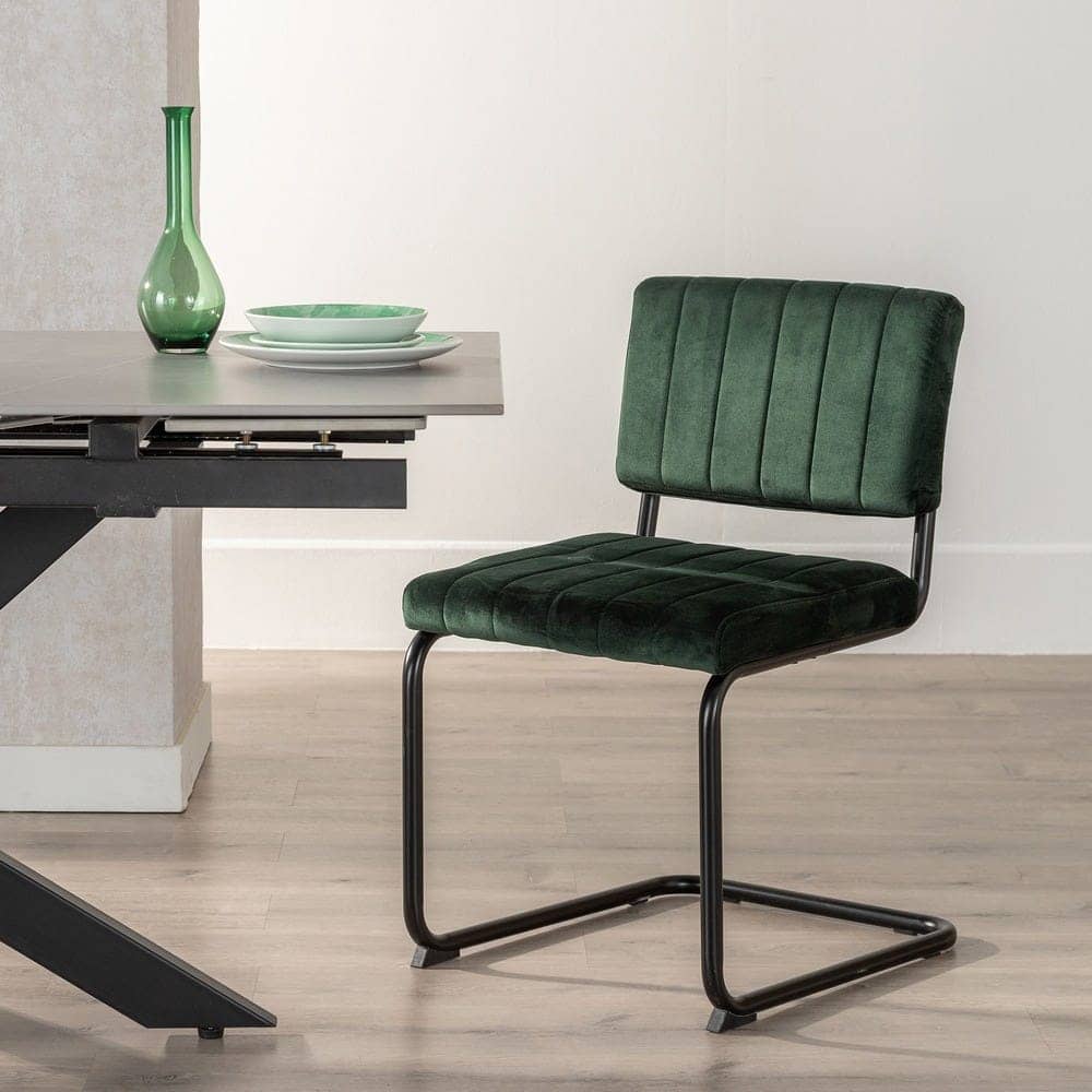 Las sillas *Sutton* en verde son la opción perfecta para añadir un toque de sofisticación y modernidad a tu hogar. Con una estructura metálica robusta y un asiento acolchado de tejido suave, estas sillas ofrecen el equilibrio ideal entre estilo y confort.