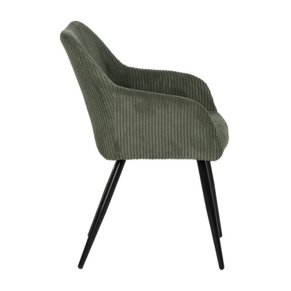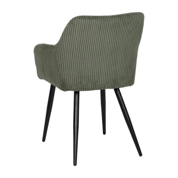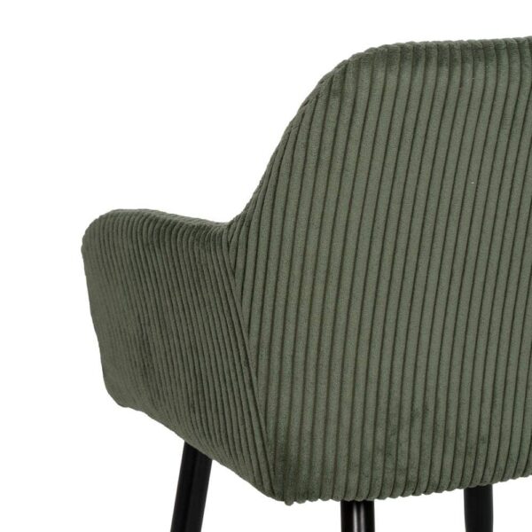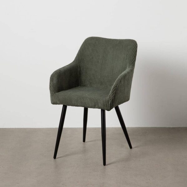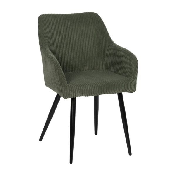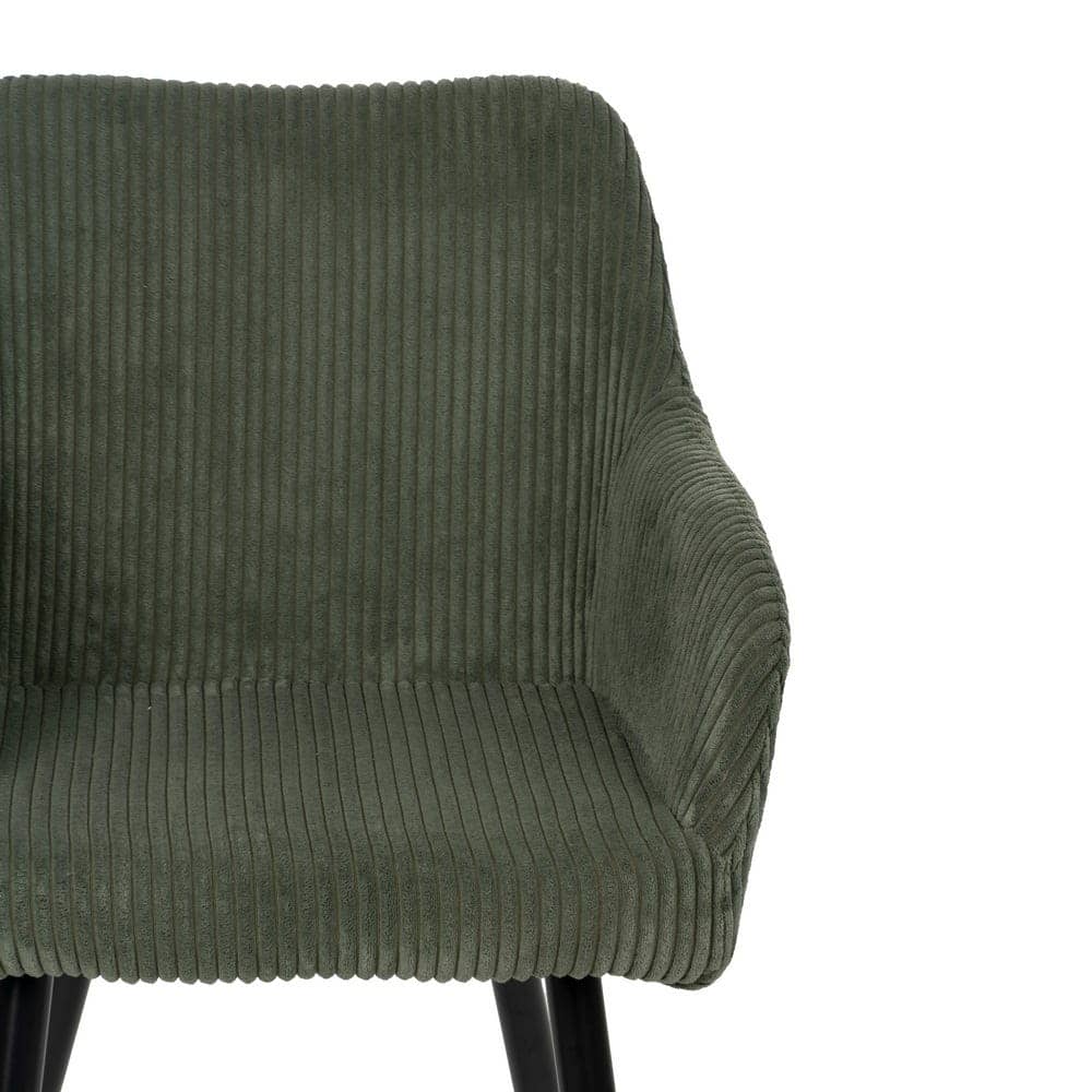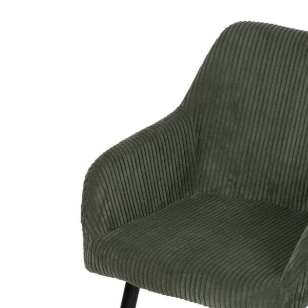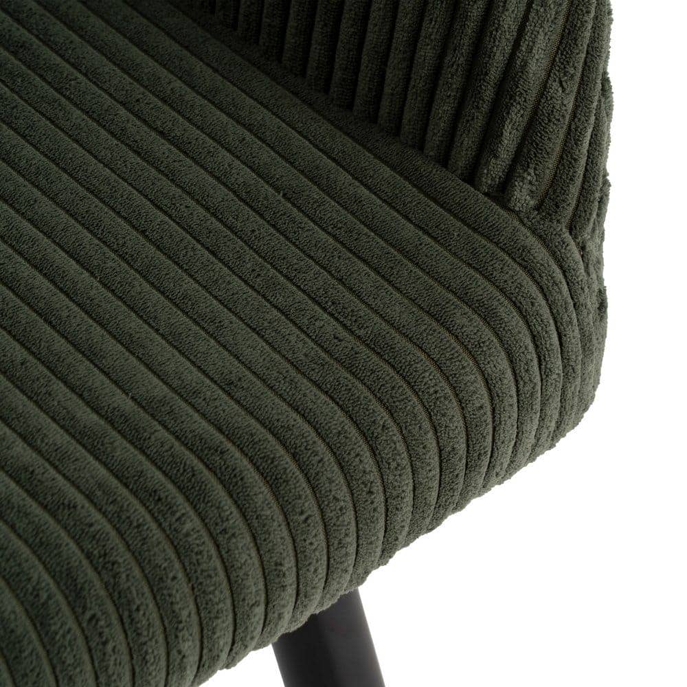 Incorpora el Pack de 2 Sillas Alenor en color verde a tu espacio y transforma la decoración con un toque sofisticado. Estas sillas destacan por su tejido de pana de textura suave, que añade elegancia y calidez a cualquier estancia. Su relleno de alta densidad (28 kg/m³) garantiza confort inigualable, ideal para largas sobremesas o reuniones.