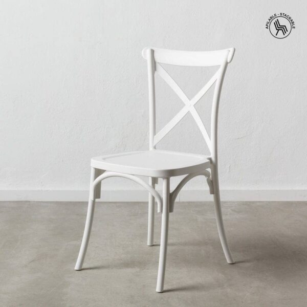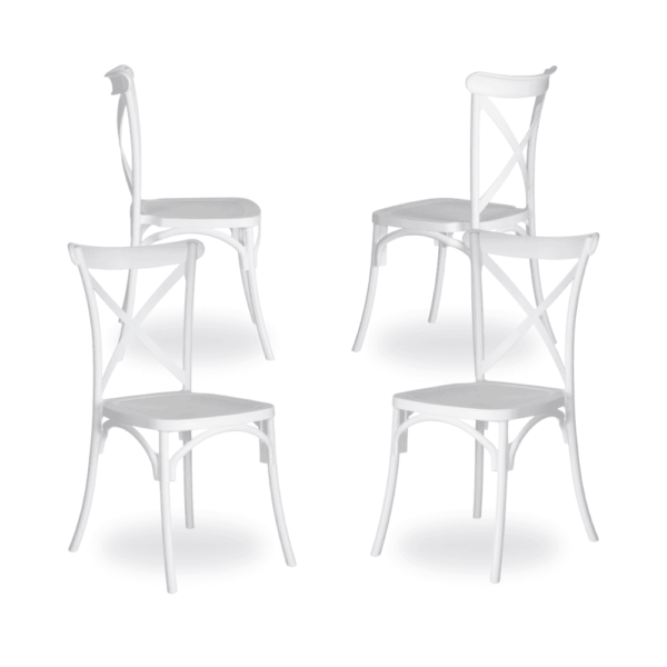 Eleva la elegancia de tu hogar o negocio con el pack de 4 sillas Claire en color blanco. Con un diseño clásico y apilable, estas sillas combinan practicidad y sofisticación, ideales para cualquier ambiente. Fabricadas en polipropileno resistente, cumplen normativas de calidad para un uso intensivo. Diseño y funcionalidad que inspiran. ¡Consíguelas hoy!