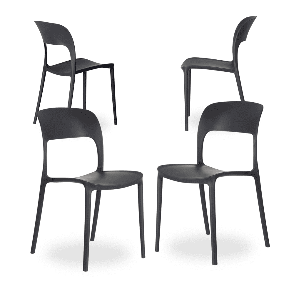 Añade un toque de sofisticación y versatilidad a tu hogar o negocio con el pack de 4 sillas Emma en color gris oscuro. Su diseño moderno y apilable combina practicidad y estilo atemporal. Fabricadas en polipropileno resistente, garantizan calidad y durabilidad. Perfectas para transformar cualquier espacio. ¡Descúbrelas ahora!