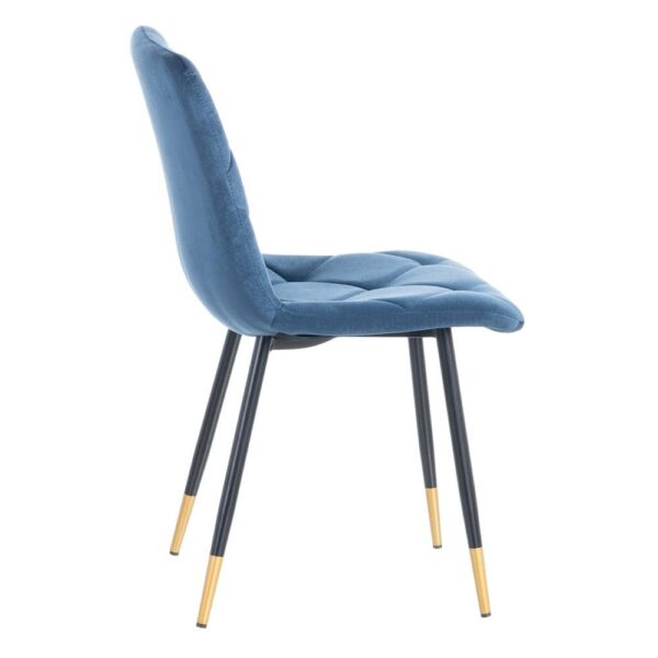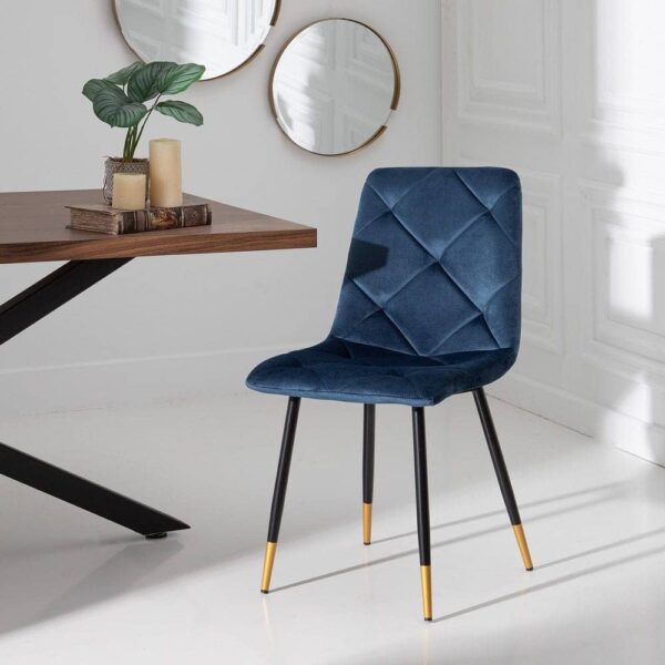 La silla Remy en terciopelo azul es el toque de elegancia y sofisticación que tu hogar o espacio de trabajo necesita. Con un material de 100% poliéster de alta calidad, esta silla ofrece una comodidad excepcional y un diseño que combina la modernidad con un toque clásico. Las patas de acero con detalles dorados en la base le dan un acabado único, mientras que su estructura robusta asegura durabilidad.