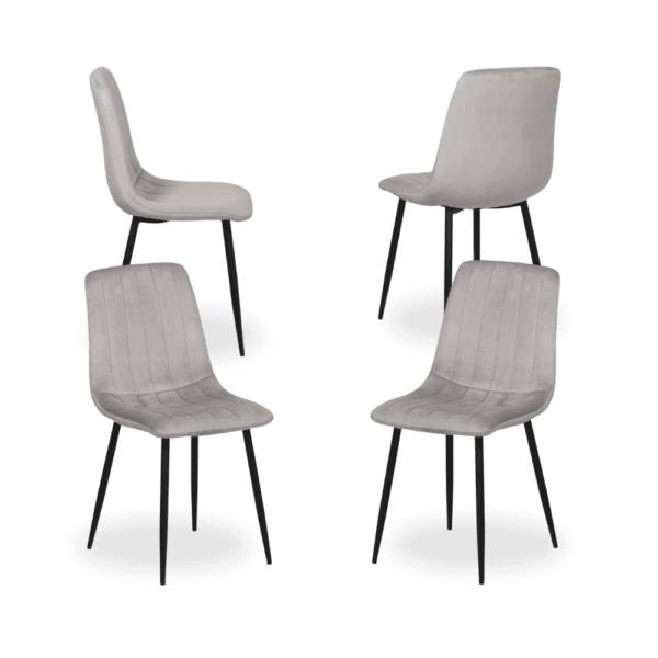 Transforma tu espacio con las 4 sillas Zayne, una opción ideal para quienes buscan elegancia y confort. Su tejido de terciopelo gris claro y las patas de hierro las convierten en una pieza sofisticada y moderna para cualquier ambiente. Perfectas para comedores, oficinas o cualquier espacio que necesite un toque de distinción.