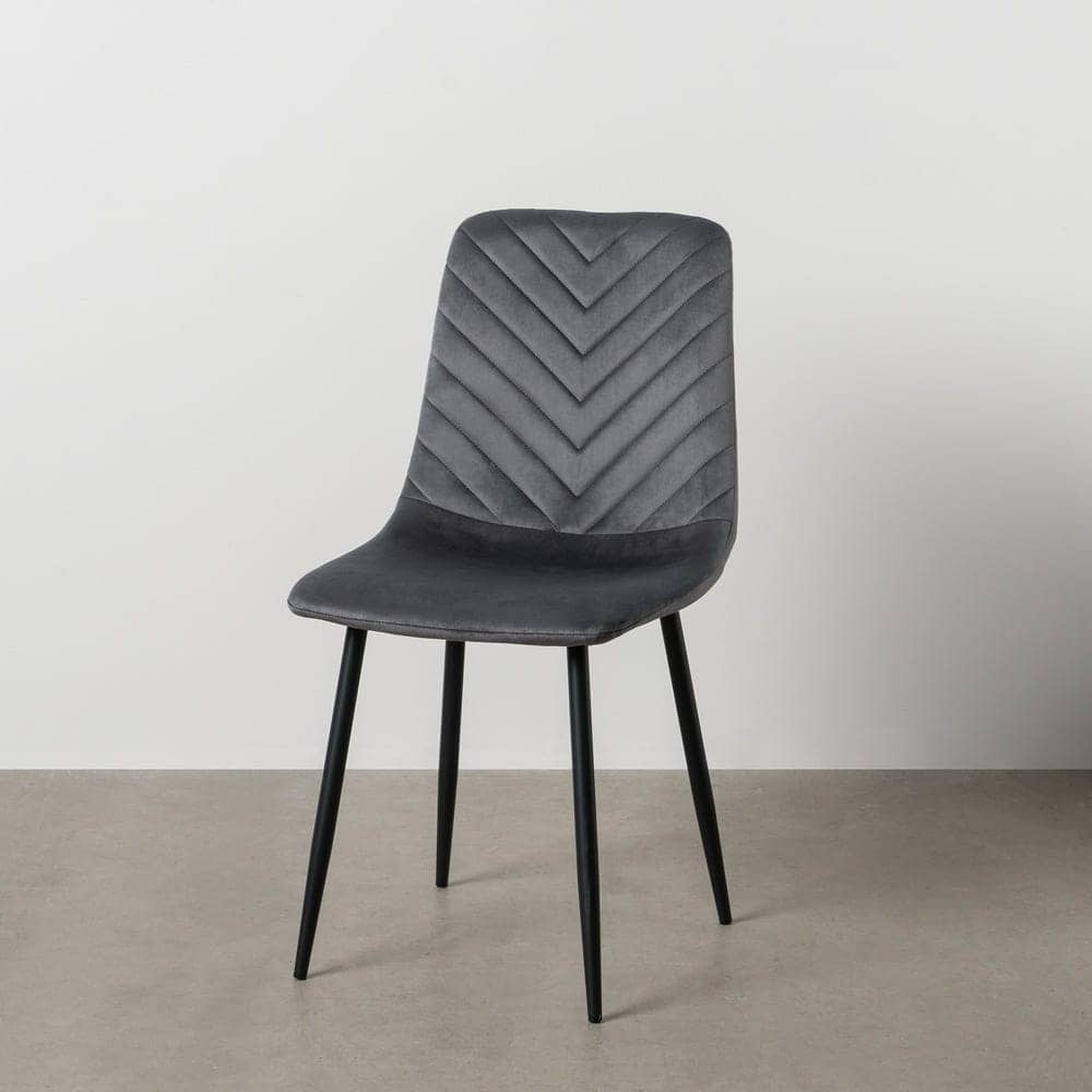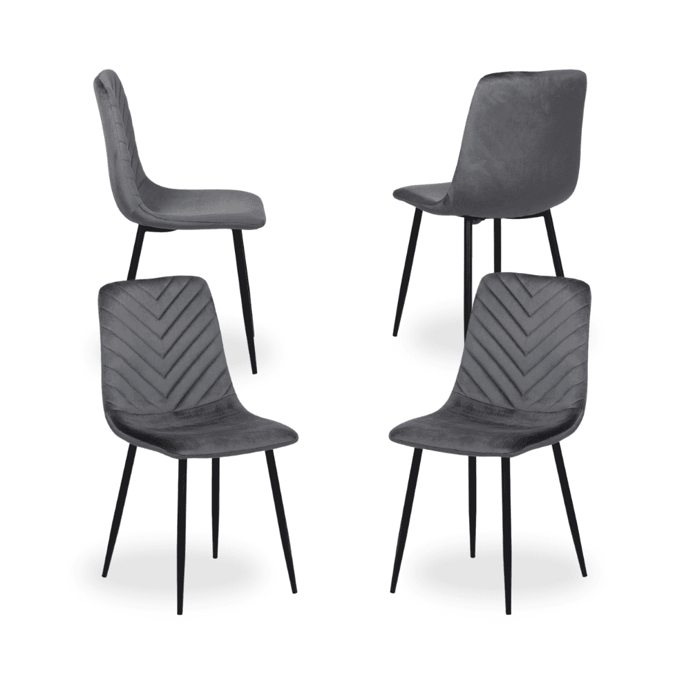 Con las 4 sillas Orion en terciopelo gris, tu espacio se llenará de sofisticación y confort. Su diseño elegante con patas de hierro y el lujoso tejido de terciopelo hacen de estas sillas una opción perfecta para darle un aire moderno a cualquier comedor o despacho.