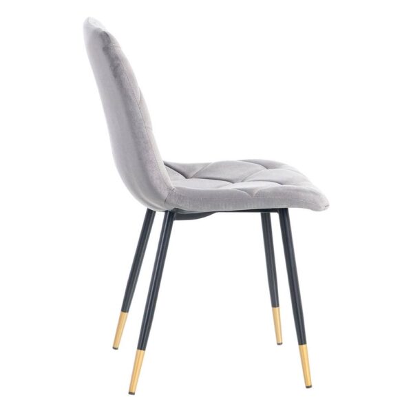 La silla Remy en terciopelo gris es el equilibrio perfecto entre elegancia y modernidad. Con una estructura de metal resistente y patas negro mate con detalles dorados, esta silla se adapta a cualquier espacio, desde tu comedor hasta tu oficina, añadiendo un toque sofisticado a tu decoración. El tapizado en terciopelo aporta un confort excepcional mientras que su diseño de líneas limpias y modernas destaca en cualquier ambiente.