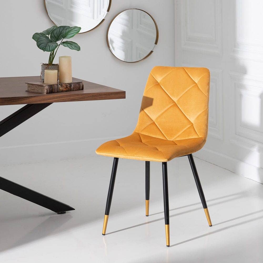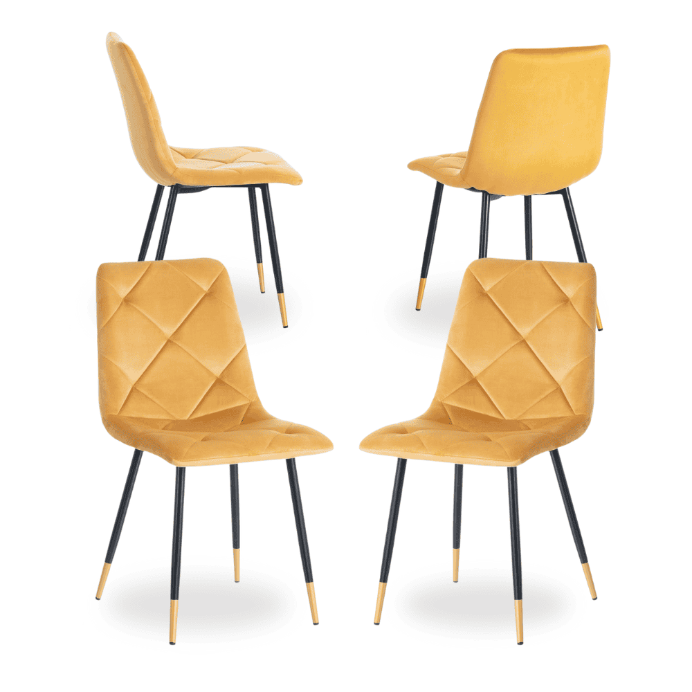 Pack de 4 Sillas de Terciopelo Mostaza con Estructura de Metal y Detalles Dorados – Sillas Modernas y Elegantes para Comedor y Salón Remy 86 cm