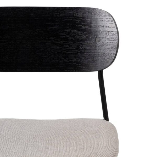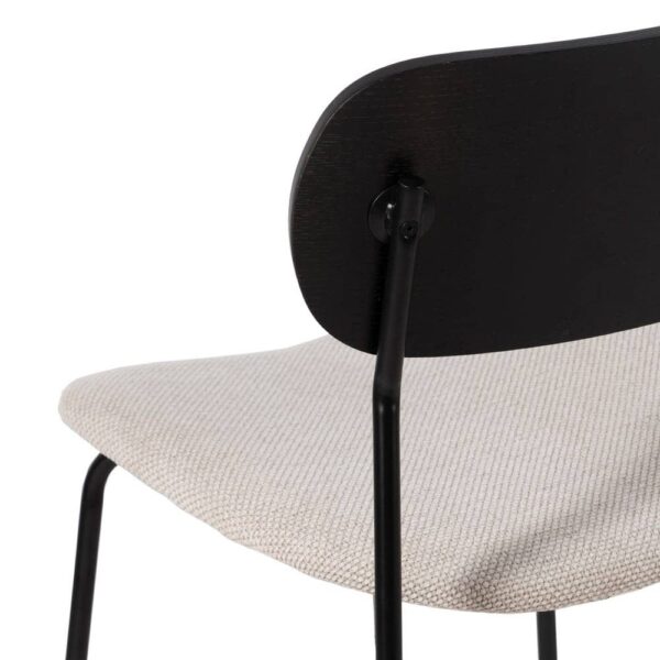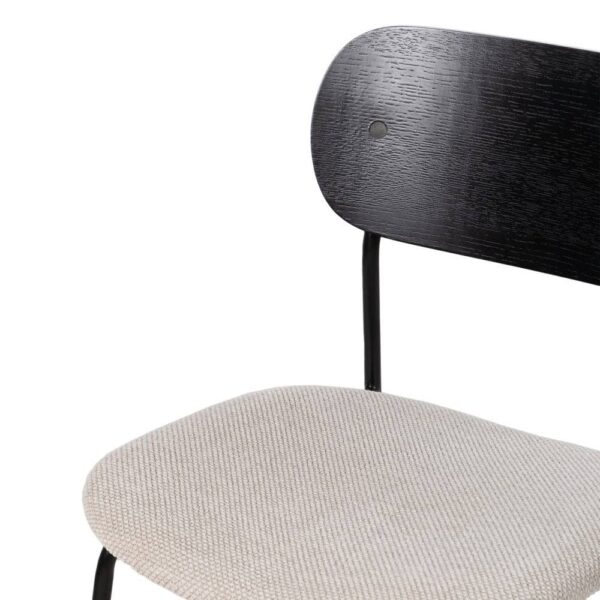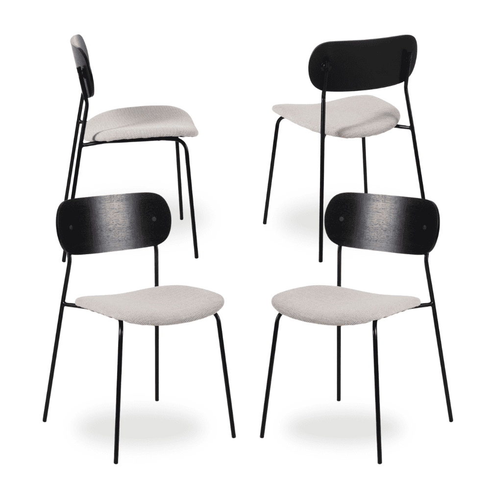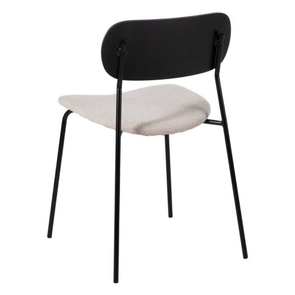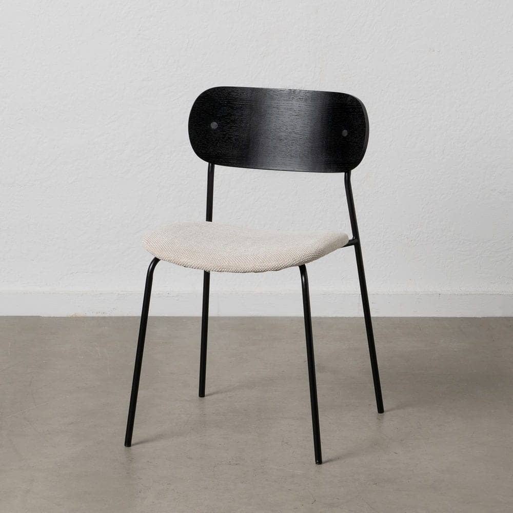 Elegancia monocromática para tu salón. La Silla Grant combina la sobriedad del negro con la suavidad del blanco, ofreciendo un diseño contemporáneo y versátil. Su estructura de metal y respaldo en madera contrachapada asegura resistencia y estabilidad, mientras que el asiento tapizado en tejido 100% poliéster añade un toque de confort.