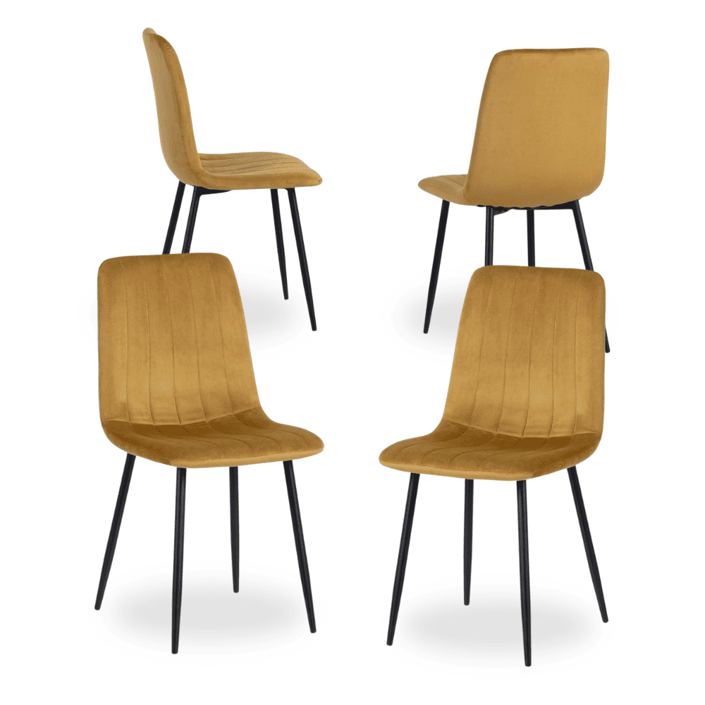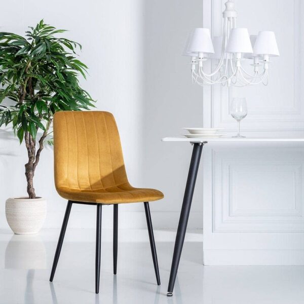 Las sillas Laurent son la opción ideal para quienes buscan elegancia y confort en su hogar. Su tejido en terciopelo dorado ofrece una textura suave y refinada, mientras que las patas de hierro y la estructura de DM garantizan una resistencia superior. Con una altura de respaldo de 47 cm y un asiento profundo de 39 cm, ofrecen un confort inigualable. El relleno de foam con densidad de 200 gm proporciona un apoyo perfecto para momentos de relax. Estas sillas no solo aportan estilo, sino también funcionalidad, con una capacidad máxima de 145 kg. Perfectas para ambientes modernos o clásicos, son el toque ideal para cenas, reuniones o momentos de descanso. Cumplen con la normativa TEST EN6139:2013, asegurando su calidad y durabilidad. ¡Descubre cómo estas sillas pueden elevar tu espacio y vive el lujo en cada detalle!