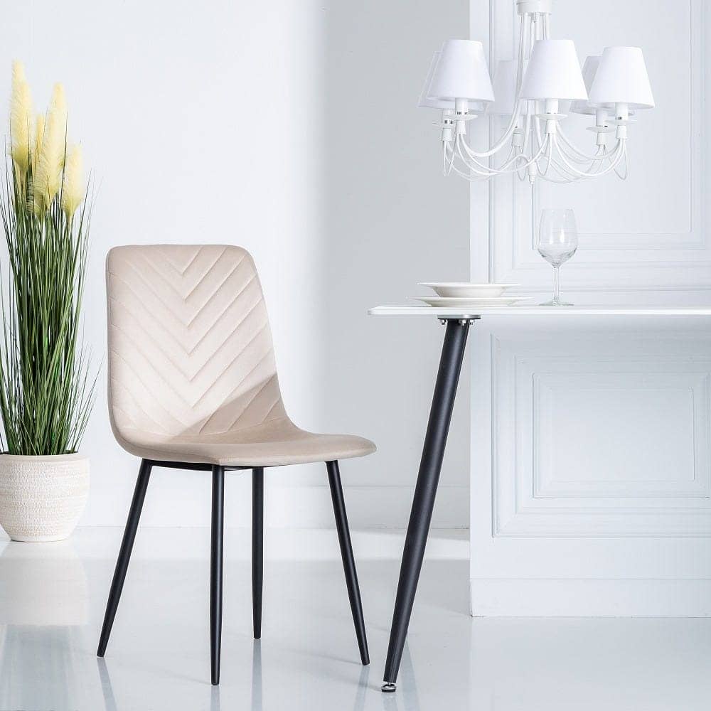 Las sillas Maverick en terciopelo beige aportan un toque de sofisticación y confort a tu hogar. Con su diseño elegante y moderno, su estructura robusta de hierro y su asiento de espuma densa, son perfectas para cualquier espacio. ¡Haz de tu comedor un lugar único con esta pieza exclusiva!