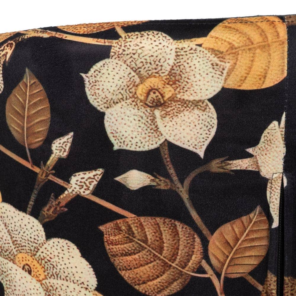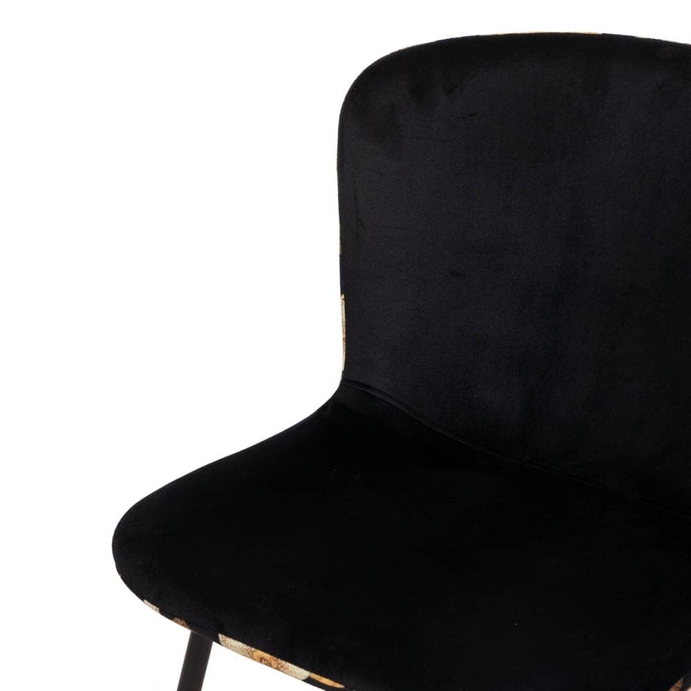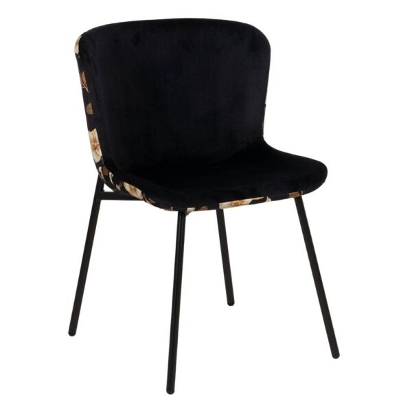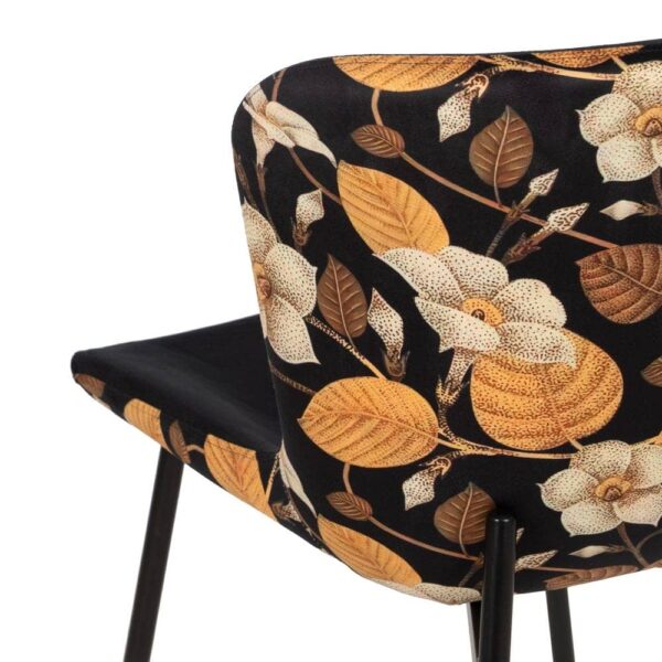 Las sillas *Troy* destacan por su combinación de un elegante estampado floral y la suavidad del tejido negro. Con una estructura robusta de MDF y metal, estas sillas ofrecen un confort excepcional y un diseño moderno que transformará cualquier espacio. Perfectas para quienes buscan una pieza única y sofisticada.
