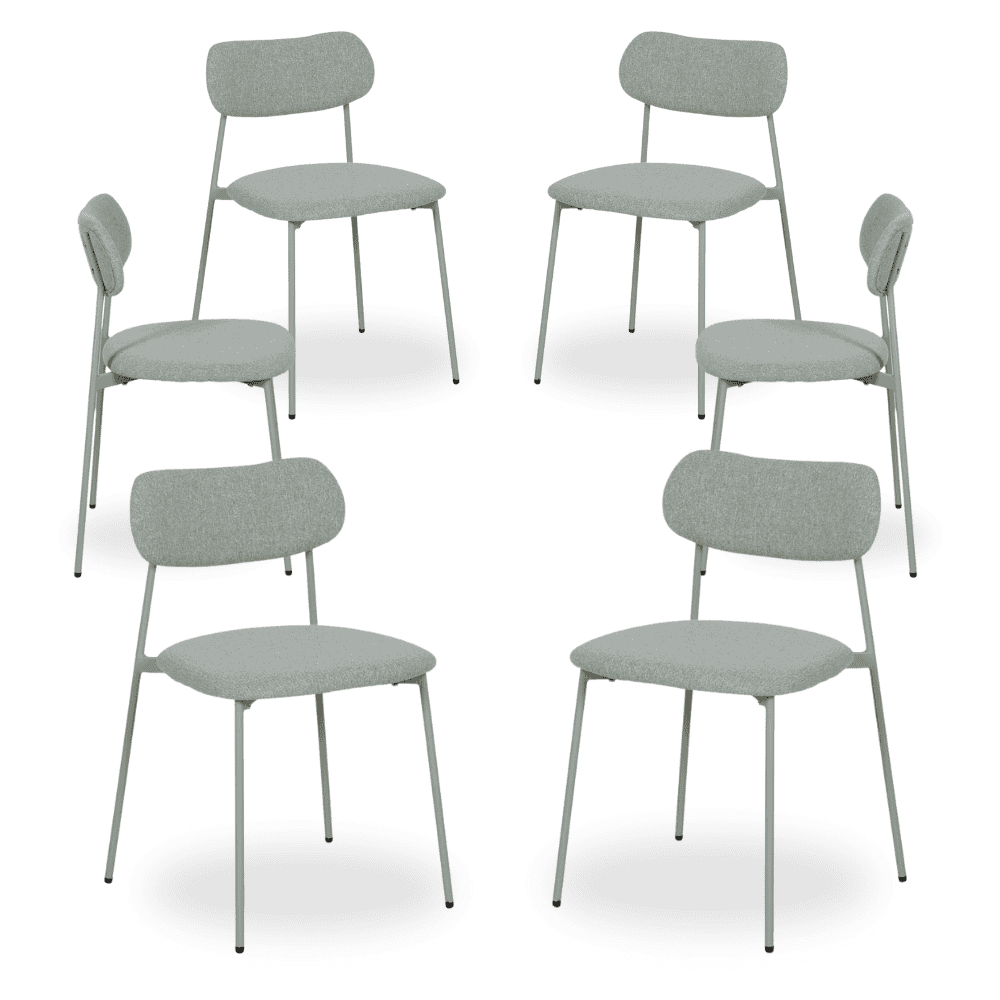 El Pack de 6 Sillas Molric Verde es la solución ideal para quienes buscan estilo y funcionalidad en sus espacios. Estas sillas destacan por su diseño contemporáneo, con un tapizado en tejido verde (100% poliéster) que aporta frescura y elegancia a cualquier ambiente, complementado por su estructura metálica de líneas suaves.