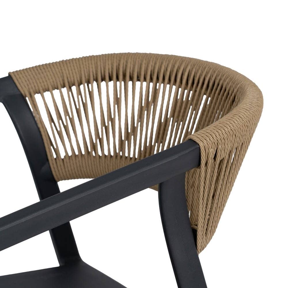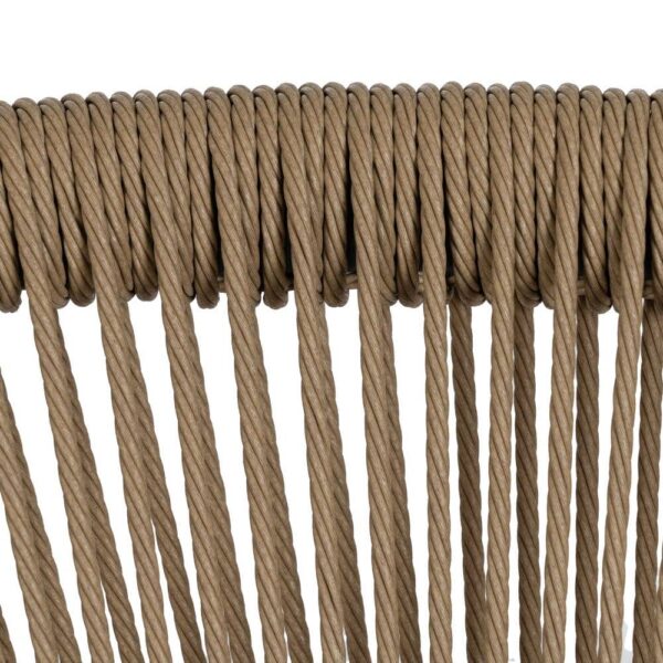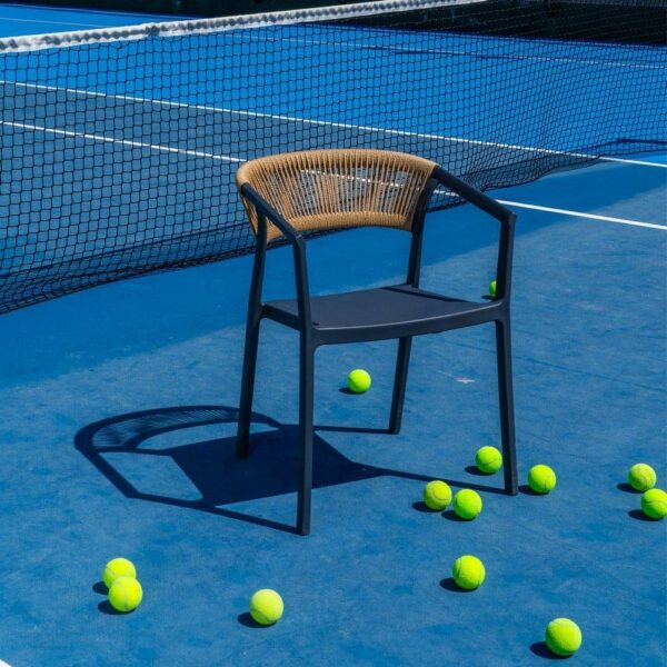 Materiales: Polipropileno, cuerda de polietileno. Altura patas:42cm. Altura respaldo:36cm. Altura del asiento:45,5cm. Medidas del asiento:42,5×40,5cm. Diatancia entre las patas:51cm. Altura del brazo al asiento:22cm (68cm desde el suelo). Peso máximo soportado:150kgs. No requiere montaje. Apilable. Cumple con la normativa UNE-EN 16139:2013