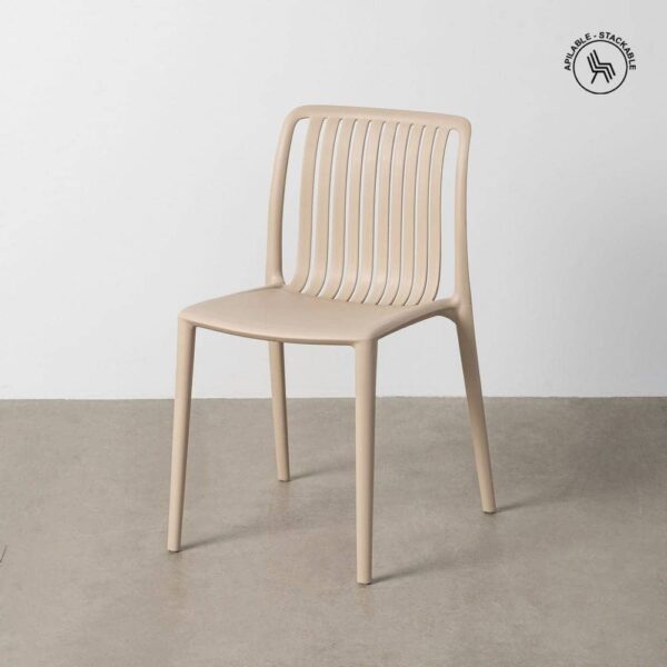 Material: polipropileno. Altura asiento: 45cm. Ancho asiento: 41cm. Profundidad asiento: 40cm. Altura respaldo: 37cm. Cumple la normativa EN12520 (uso doméstico). Apilable.
