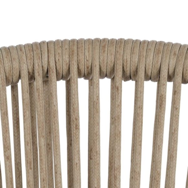 Material: polietileno, aluminio. Altura asiento: 45,5cm. Ancho asiento: 43cm. Profundidad asiento: 44cm. Altura respaldo: 39cm. Apilable. Cumple la normativa EN581 (uso exterior).