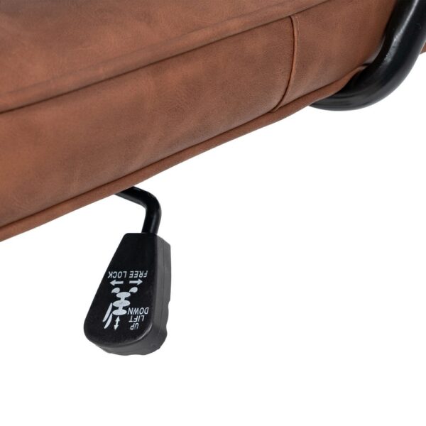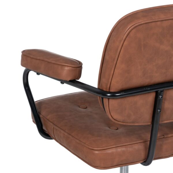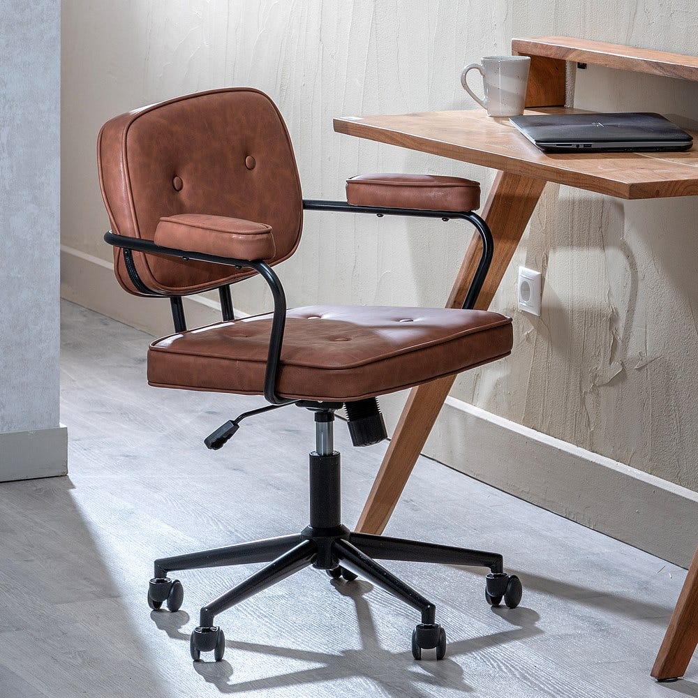 Silla con ruedas color camel en simil piel con estructura metálica – 56 x 56 x 92 cm