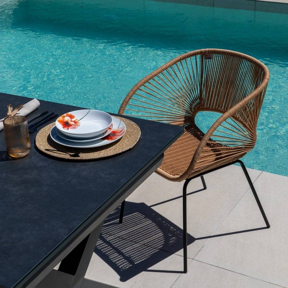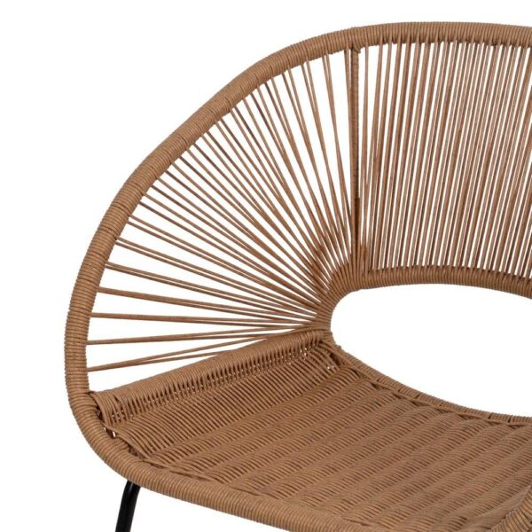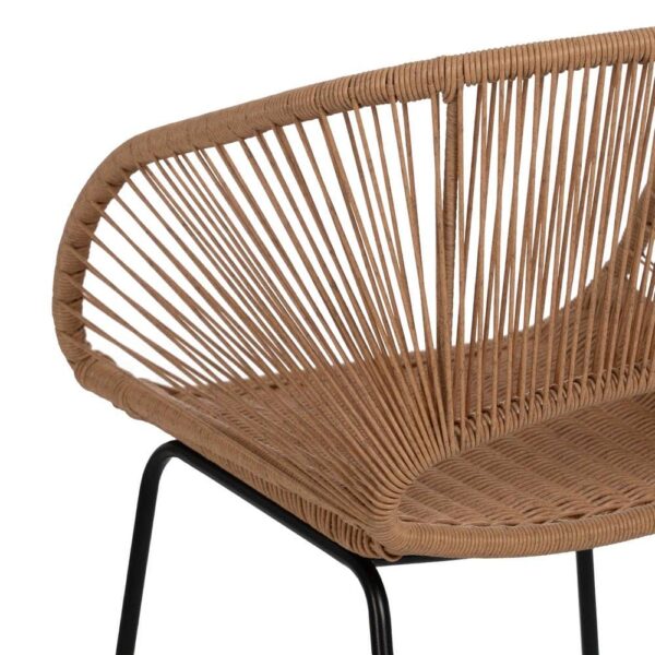 Material: polietileno, acero. Altura asiento: 44cm. Ancho asiento: 41cm. Profundidad asiento: 41cm. Altura respaldo: 30cm. No apilable. Cumple la normativa EN581 (uso exterior).