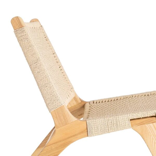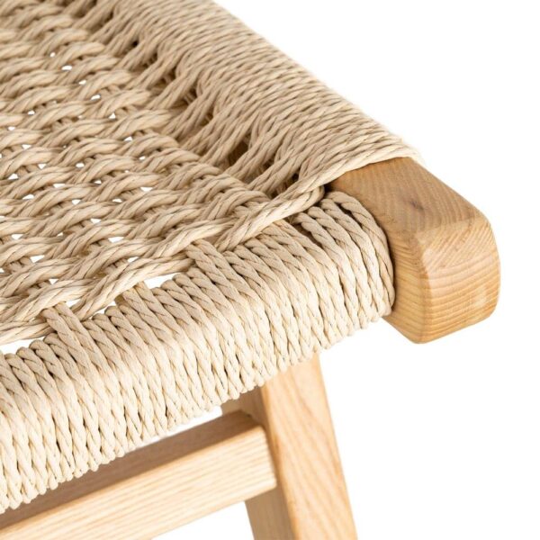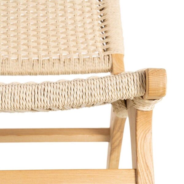 Material: madera de fresno – cuerda de papel. Altura asiento: 38cm. Altura respaldo: 53cm. No precisa montaje. Cumple normativa: EN12520