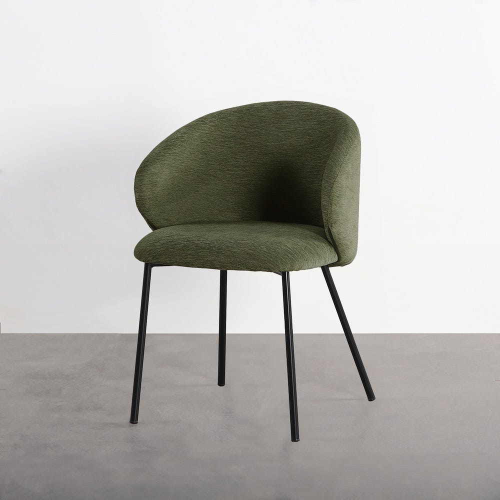 Silla verde tapizada en tela con patas metálicas estilo contract – 56,5 x 56 x 74,5 cm